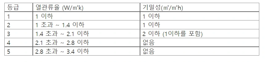 1. 시스템 창호의 기밀성은 거의 대부분 1등급이다. 물론 그 안에서 세부 수치는 차이가 발생한다.