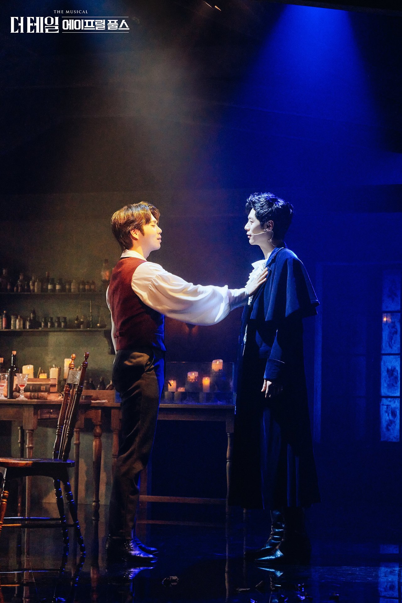 둘에 대한 해석이 변했던 것은 바이런의 추궁에 모르핀을 마시려던 존의 모습에서였다. 모르핀을 마시는 것이 두통에 대한 해결방법이라고 생각했을 정도로 의학적 지식이 무지했던 그 시절을 떠올린다면 혼란스러운 상황에 놓인 존이 다시금 모르핀을 마시려고 하는 행위는 단순히 고통스러운 현실로부터의 도피로 보이기도 한다. 그러니 존이 모르핀을 마시려고 하는 장면에서 바이런이 존을 만류하는 장면은 그저 존을 걱정하는 목소리로 들렸다. 하지만 단순히 이렇게 생각하고 받아들였던 이 장면이 결국 나를 본 작품의 후기로 적게 만들었다. 내가 연기를 좋아하는 이유는 폭발적으로 터지는 에너지 덕이다. 그러나 때로는 그 에너지가 너무 과하면 피로하게 만드는데, 내가 경험해 본 적이 없는 것들을 충분히 이해하게 만들고 같이 벅찬 감정을 이해하고 토해내게 만드는 것이 예술의 어떤 하나의 역할이지 않을까 하는 생각이 든다. 연극 <폭풍의 언덕>에서 히스클리프가 캐서린에게 했던 '날 버린 널 용서해, 날 죽인 널 사랑해, 하지만 널 죽인 널 용서할 수가 없어'라고 말한 대사가 문득 생각났다. 나는 다른 작품들과 기묘한 기시감을 느끼는 것이 아닌 동일한 이해 요소를 요구하는 면에서의 연결점 찾는 것을 좋아한다. 앞서 설명했듯 <더 테일 에이프릴 풀스>라는 본 작품에서 이 장면이 항상 존이 목숨을 잃을까 봐 단순히 걱정하고 다그치는 목소리라고 생각되었다면, 지금은 바이런의 걱정이 존이 존 자신을 자학하는 것에서부터 비롯된 분노로 느껴졌다. 진심으로 상대의 안위를 걱정하느라 분을 토해내는 듯한 목소리였고, 나는 그래서 그게 좋았다. 또한 이 연기 디테일로 존이 바이런을 생각하고 절망하는 마음을 더욱이 이해할 수 있었다. 본 작품의 두 인물 모두 실존하는 인물을 모티브로 한 캐릭터이긴 하지만 창작으로 새로 풀어낸 만큼 캐릭터에 대한 해석은 개인의 자유에 있다고 생각한다. 그러니 이 장면이 바이런에게서 비롯된 장면인지 혹은 루스벤에게서 비롯된 장면인지를 말하라고 한다면 본 작품의 장점인 열린 해석에 달려 있지 않을까. 정말 존이 바이런을 사랑했다면 그것은 그 작품의 특성 중 하나일 뿐이고, 캐릭터를 해석하는 배우와 그것을 보고 판단하는 관객의 몫일뿐이다. 이 장면 이후 '이제는 더 이상 싸우지 말자' 넘버 이후 존이 바이런에게 날이 선 모습을 보였던 것도 충분히 이해할 만도 하다. 진심의 무게가 다른 것이 눈에 보이면 실망하게 된다. 바이런이 보이는 태도는 본인의 진심이 어떠하든 결국 장난처럼 보였을 것이고, 그것이 존에게는 상당히 실망스러운 현실이었을 것이다. 그러니 거부하고 밀어내는 것이 어느 정도의 방어기제의 역할을 하지 않았을까 하는 생각이 든다.