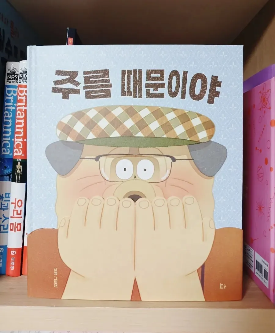‘주름 때문이야’를 쓴 작가 분은 사람에 대한 관심이 많은 것 같다. 자신의 얼굴에 주름이 많다는 사실을 우연히 발견한 주인공이 겪는 심리적 변화가 그림과 글에 잘 드러난다. 그림책만이 가질 수 있는 특징을 잘 활용한 것도 돋보인다. 특색 있는 띠지를 사용했다. 띠지에는 얼굴을 가린 손이 그려져 있고, 띠지를 걷어낸 겉표지에는 무려‘주름’진 얼굴이 그려져 있었다.