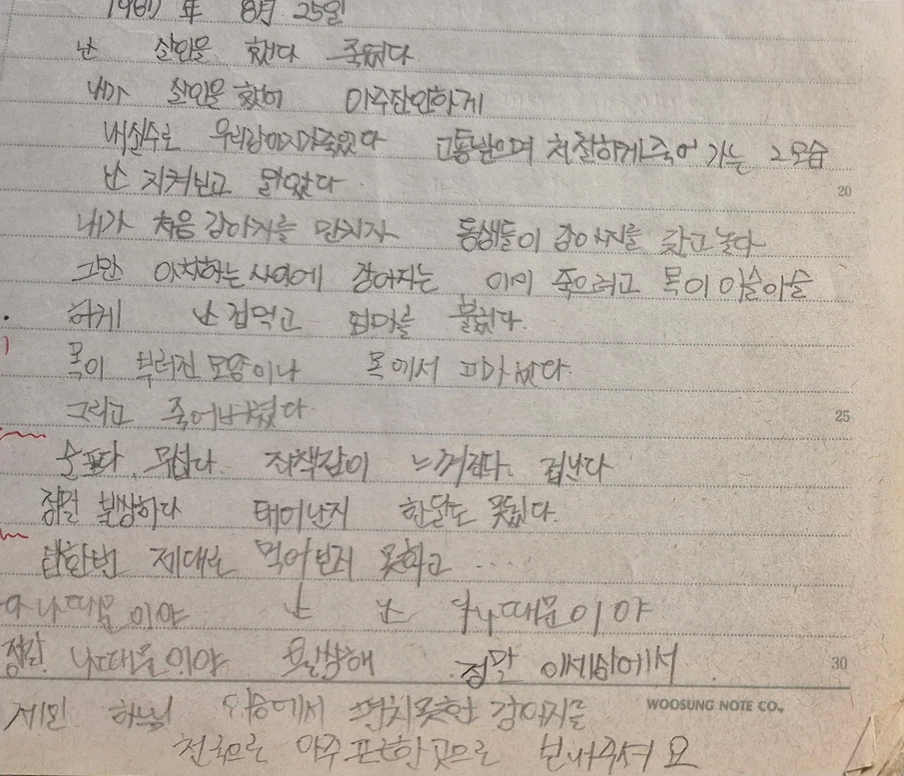 울 구불고 펄쩍 튀면서 눈물콧물 범벅이 된 나는 죄책감에 동생을 나무라도 보고 내가 왜 그걸 몰랐을까 자책도 했지만 결국 검둥이 강아지는 짧은 생을 마감했다. 나는 살인자라고 일기장에 적었었다.