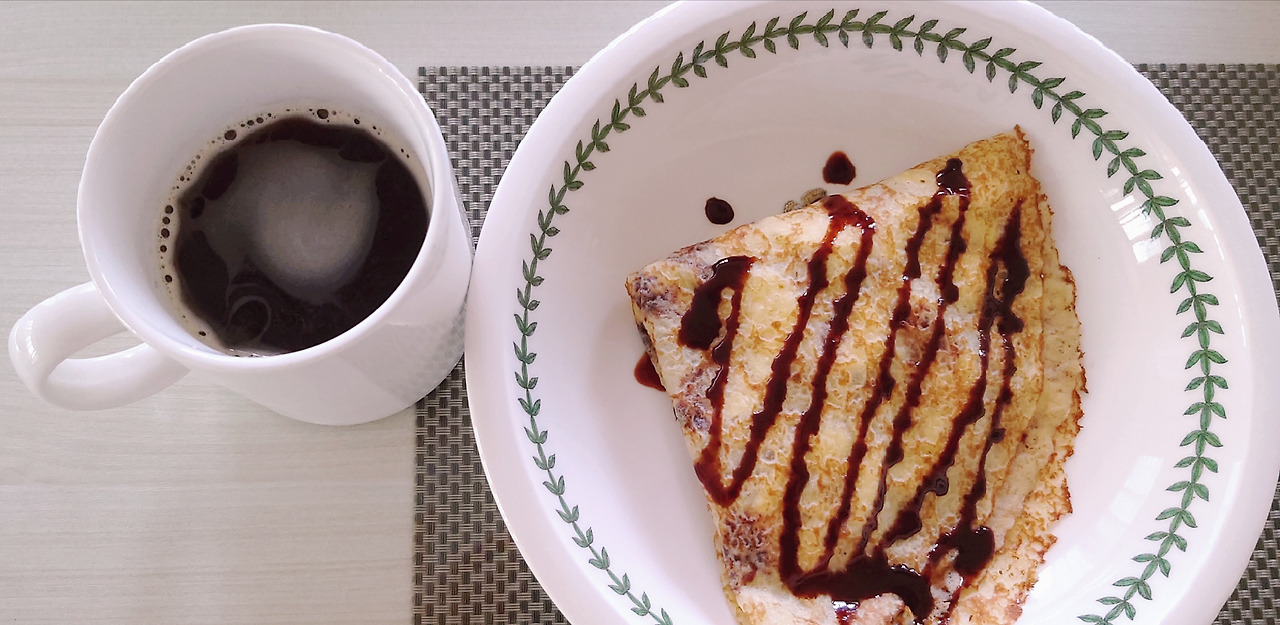 내가 만드는 반죽은 믿을 수 없으므로 이미 만들어진 냉동 크레페를 팬에 올리고 바나나를 숭덩숭덩, 예쁘게 접어서 초코시럽을 뿌리니 근사한 요리가 완성되었다. 거기에 커피까지 더하니 너무나 훌륭한 브런치! 게다가 돈도 얼마 안 들다니. 이런걸 왜 사람들은 비싼 돈을 주고 사먹는지 모르겠다니까. 잘했다, 십 분 전의 나.