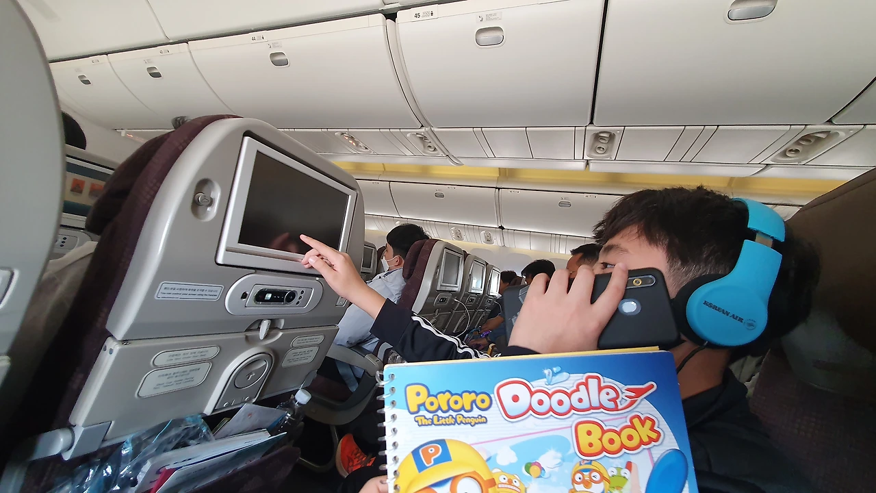 아이들은 대한항공을 처음 탄다. 그동안 몇 번의 여행을 다녀왔으나 가성비의 여왕인 엄마 덕에 저가 항공사를 이용해 왔다. 남편은 출장 차 가는 것이라 회사에서 대한항공을 예약하였고, 돌아오는 일정을 우리 여행에 맞춰 변경해 주었다.(휴가까지 붙여주신 회사.. 감사합니다!) 나는 그동안 남편이 야금야금 모은 마일리지를 털어서 보너스 항공권을 예약했다. 그래서 결국 아이들도 대한항공을 타게 되었다는 이야기를 쓸데없이 길게 해 본다.