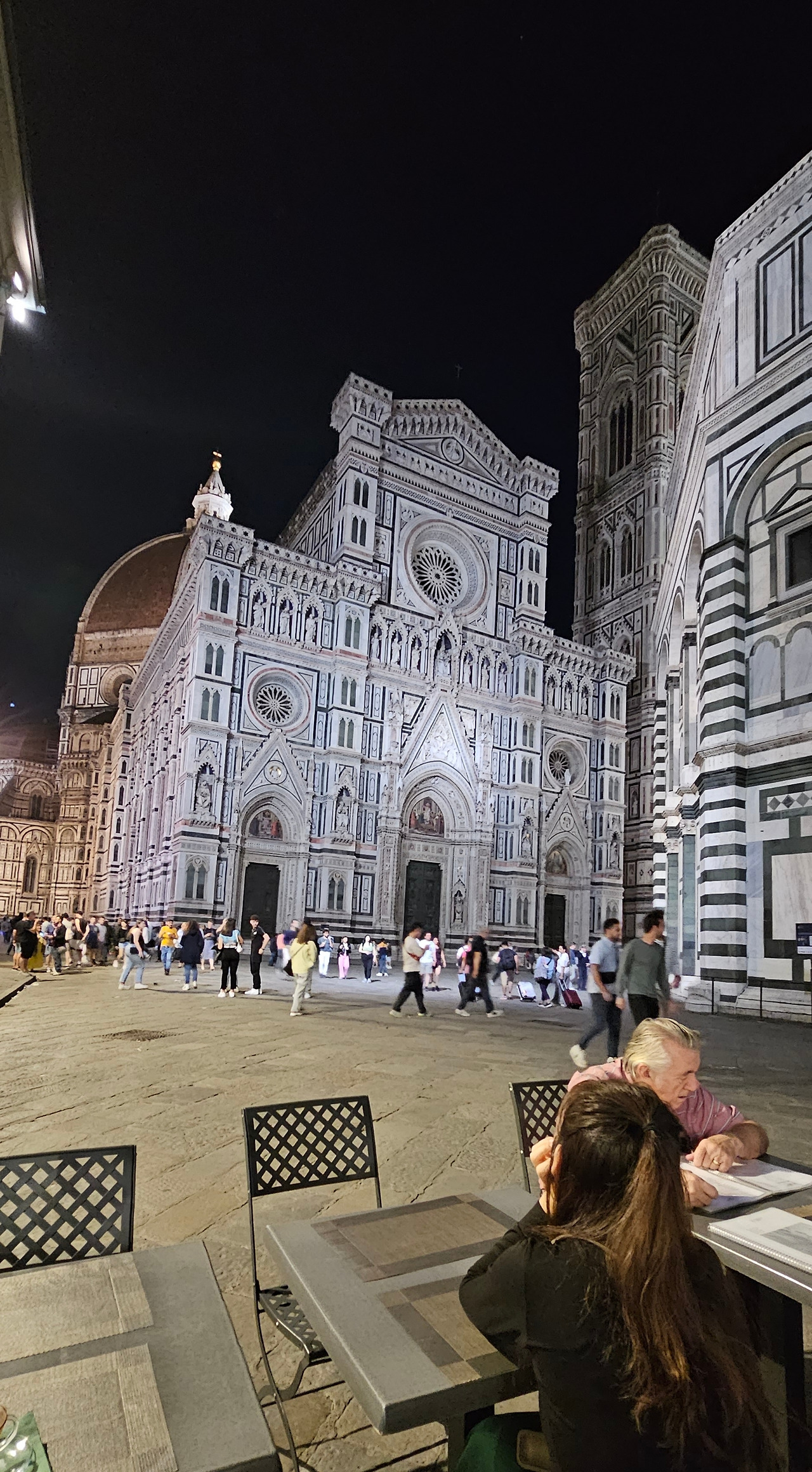 아이들에게 떠밀려(!) 밤 산책을 나간 날, 걷다 보니 피렌체대성당이었다. 마침 대성당 바로 앞 카페에 빈 테이블이 있어 잠시 앉았다 가기로 했다. 조명이 켜진 한적한 대성당은 밤새 보고 있어도 좋을 것처럼 아름다웠다. 작은 네모 테이블이 열두어 개. 마주 보고 앉게 되어 있어 한 명은 대성당을 등지고 앉아야 했다. 가득 찬 테이블은 커플이 대부분이었는데, 유심히 보던 나는 웃음을 터뜨리지 않을 수 없었다. 대성당이 잘 보이는 쪽은 모두 다 여자들이 앉아있었고, 등지고 앉는 자리에는 다 남자들이었다. 맥주 한잔을 추가하는 남편에게 "이번에는 여보가 이쪽에 앉아봐요. 대성당을 보고 앉으니 정말 기분 좋다."