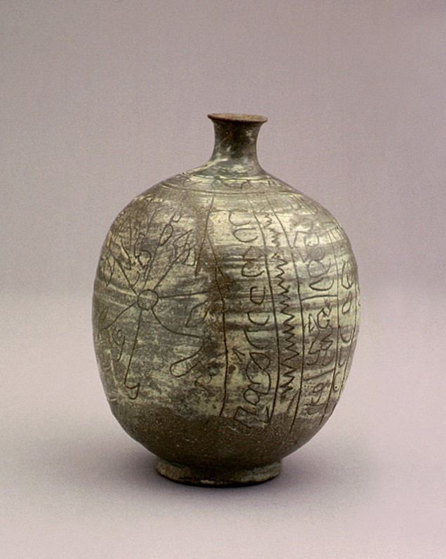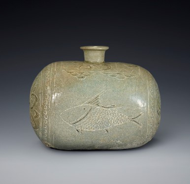 분청사기음각수조문편병 (粉靑沙器陰刻樹鳥文扁甁) 조선 15~16세기, 보물 제1069호. Ⓒ삼성리움미술관