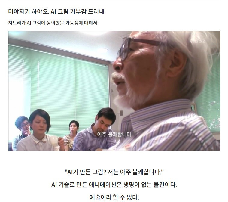 얼마 안 가 일각에서 창작 윤리 및 저작권 침해 문제가 불거졌다. 지브리의 상징 인물 미야자키 하야오(宮崎駿)는 평소‘아날로그적 신비감’과 '완결성에 대한 집착'을 작품의 중요한 요소로 꼽았다. 모든 장면을 가내수공업 방식으로 제작할 만큼 그는 손으로 만든 장면의 힘을 매우 중시하는 창작자다. 그의 창작이 작가성과 대중성을 모두 아우르는 것은 국경을 초월해 인간이라면 소구 할 만한 이야기, 개인적이고 일상적인 소재, 따뜻한 감성에서 모두가 공유, 수긍할만한 보편성을 도출하는 데 있다. 그중에서 인간다움이야말로 미야자키 하야오가 평생 지켜온 창작 철학이자 삶의 태도다.