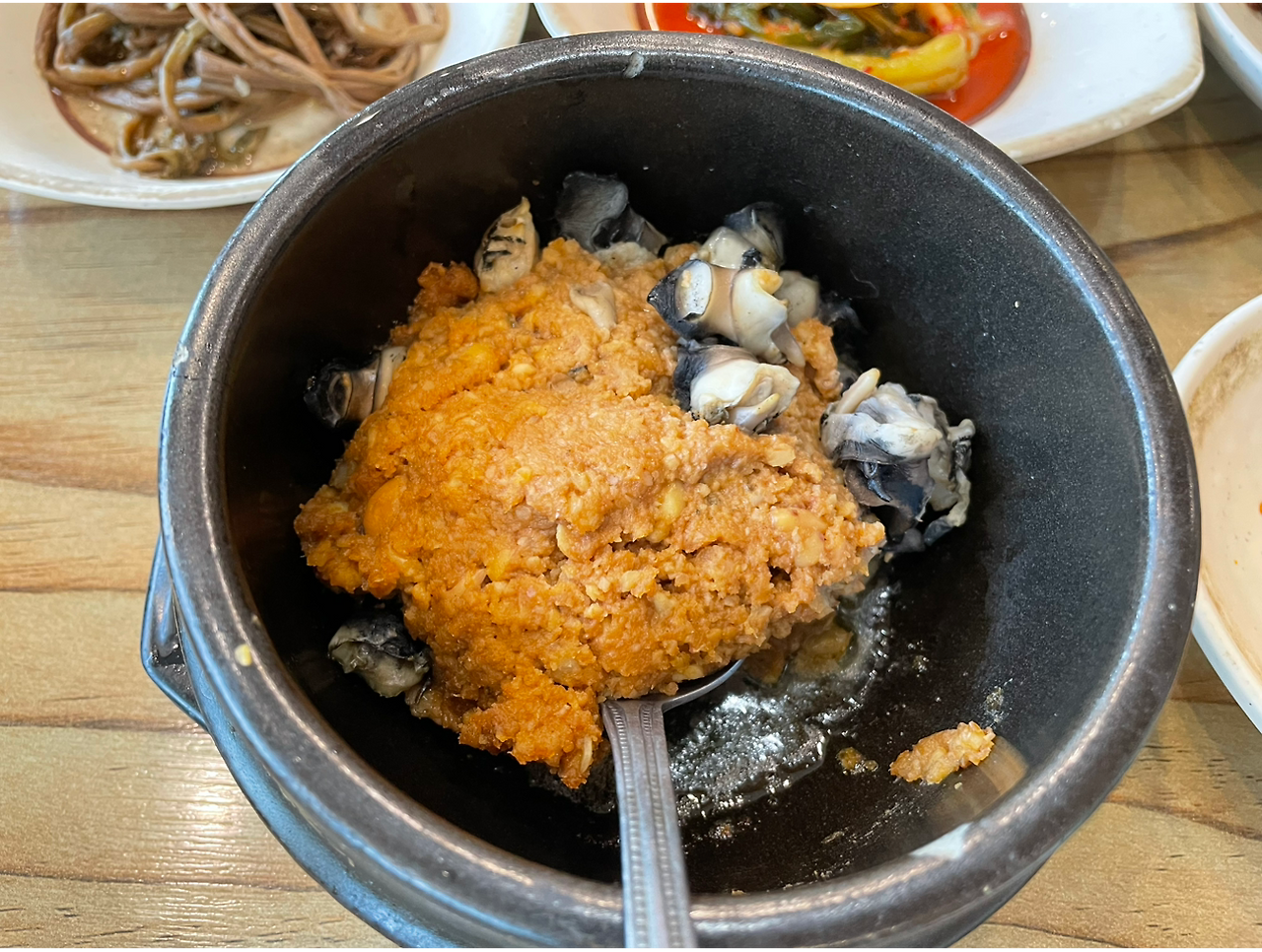 우렁이가 조금 부족하긴 했지만 땅콩과 된장을 섞어서 생각보다 간이 세지 않고 고소한 풍미가 조화로웠다.