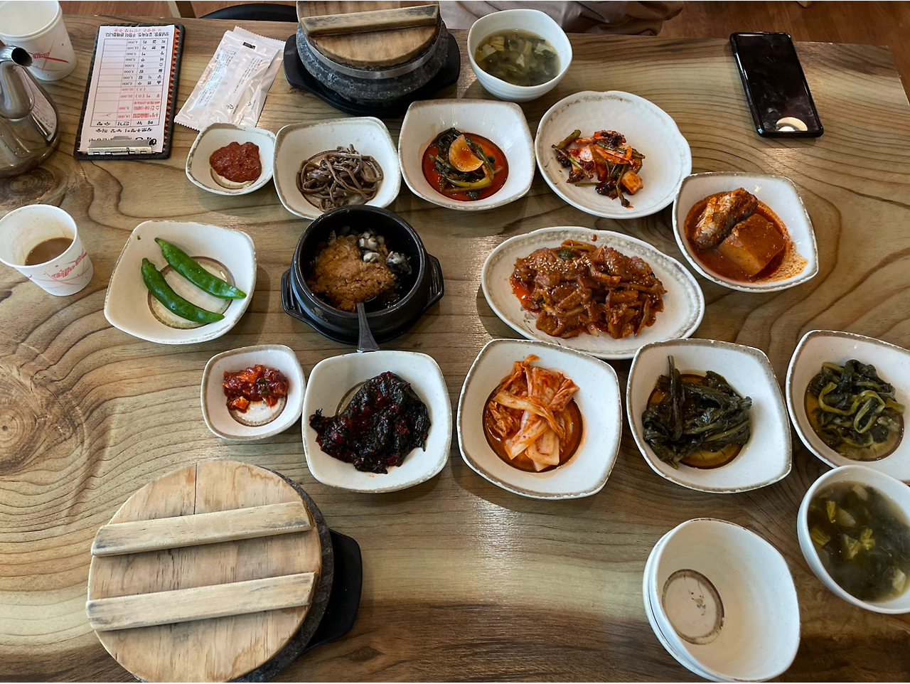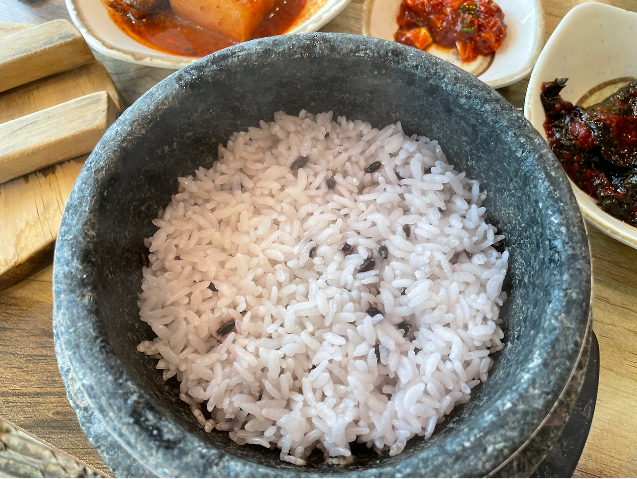 10시 50분에 도착했었는데 벌써 자리가 이만큼 다 차있었고, 우리는 두번째로 웨이팅을 걸고 기다렸다. 정말 어마어마한 맛집이라는 아우라가 풍겼다. 자리가 나서 들어갔을 때에는 이미 모든 반찬과 돌솥밥이 셋팅되어 있었고, 그야말로 정말 앉아서 먹기만 할 수 있도록 엄청난 스피드와 회전율을 자랑했다.