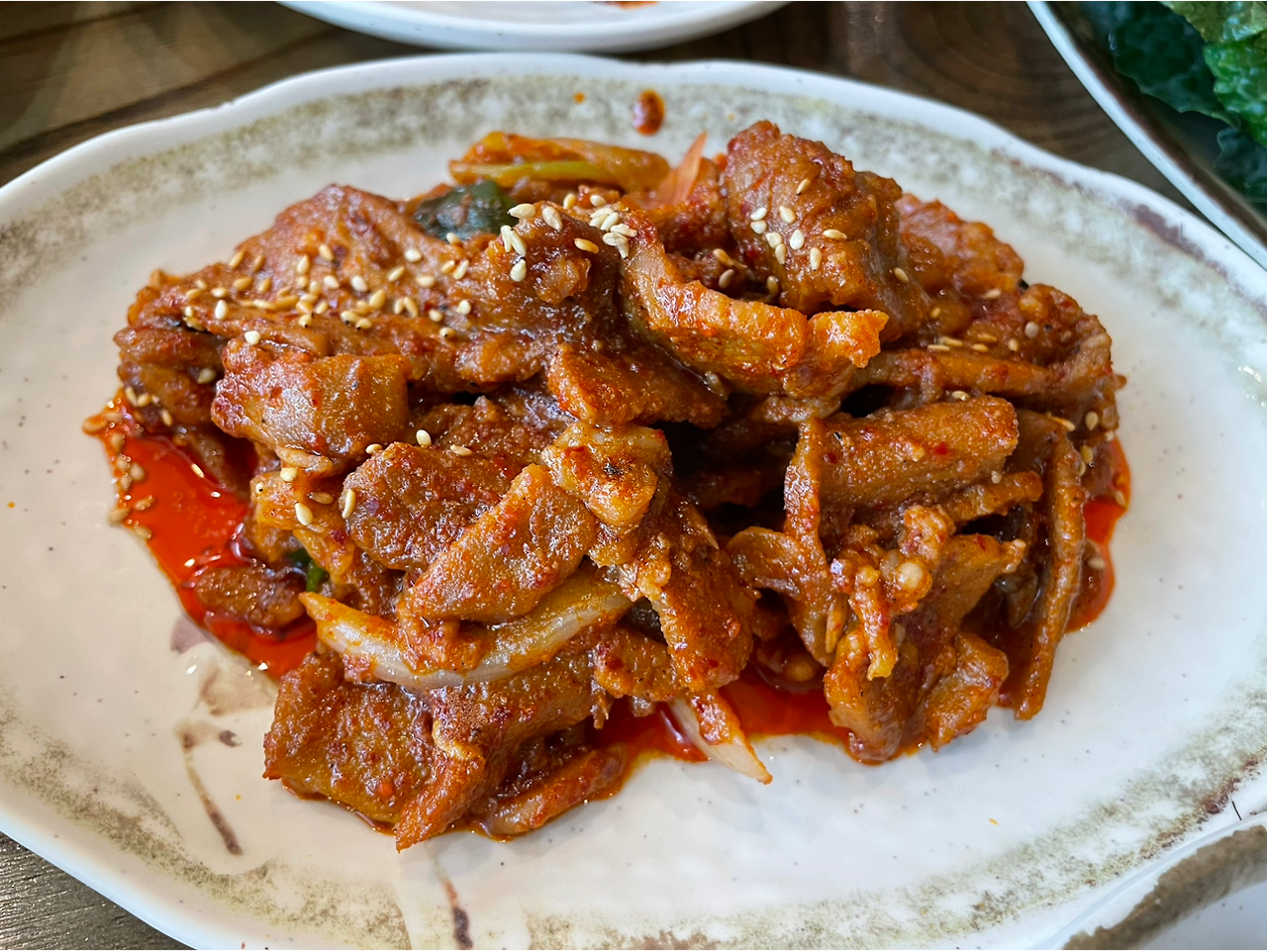 그리고 상차림을 더욱 풍성하게 해 줄 제육볶음. 적절한 간에 맛있어서 반접시 리필해서 더 먹었다.