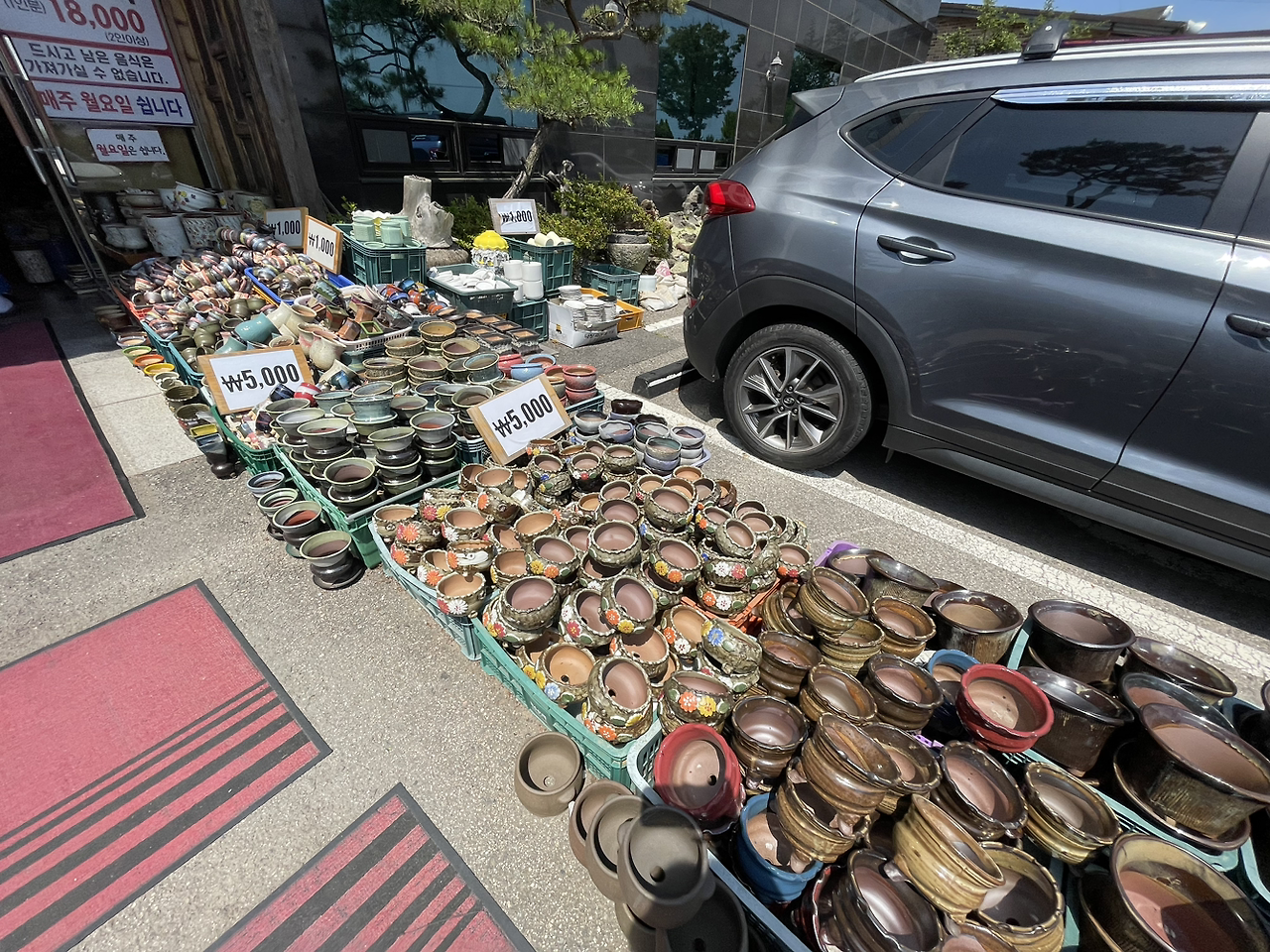 입구에는 다양한 도기를 싼 가격에 판매하고 있다. 그리고 직접 만든 다양한 김치종류와 장아찌, 젓갈 들을 판매하고 있다. 이 메뉴들은 실제 밥상 위에 올라와 있는 메뉴.