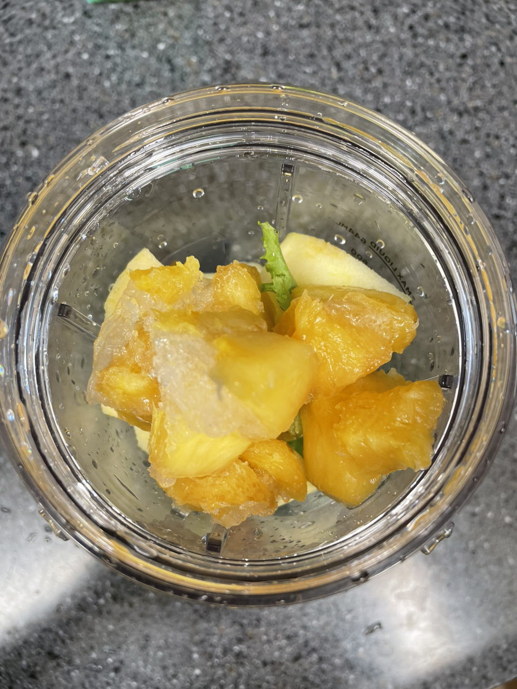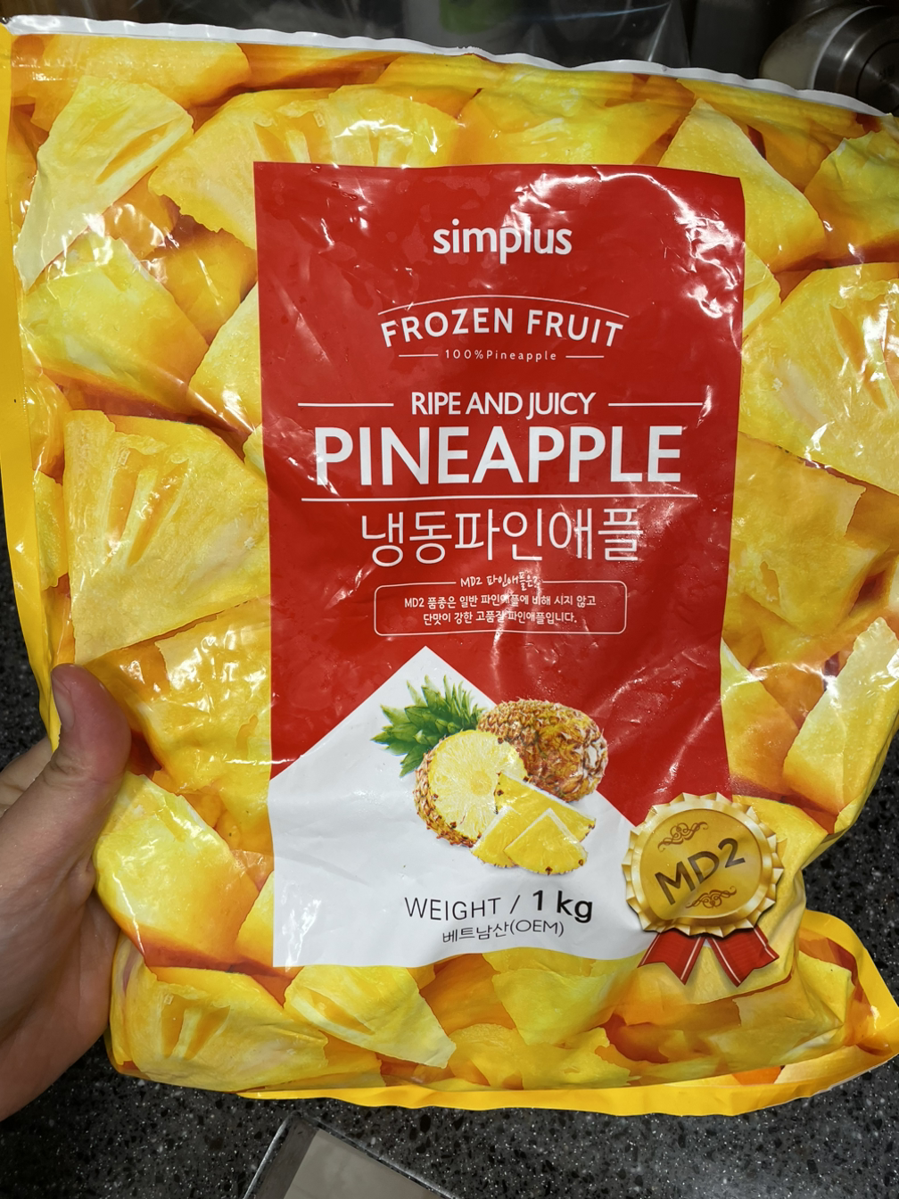 3. 냉장고를 뒤져보니 화석이 되어가고 있는 냉동 파인애플도 꺼내어 넣는다. 상큼한 맛이 기대된다.