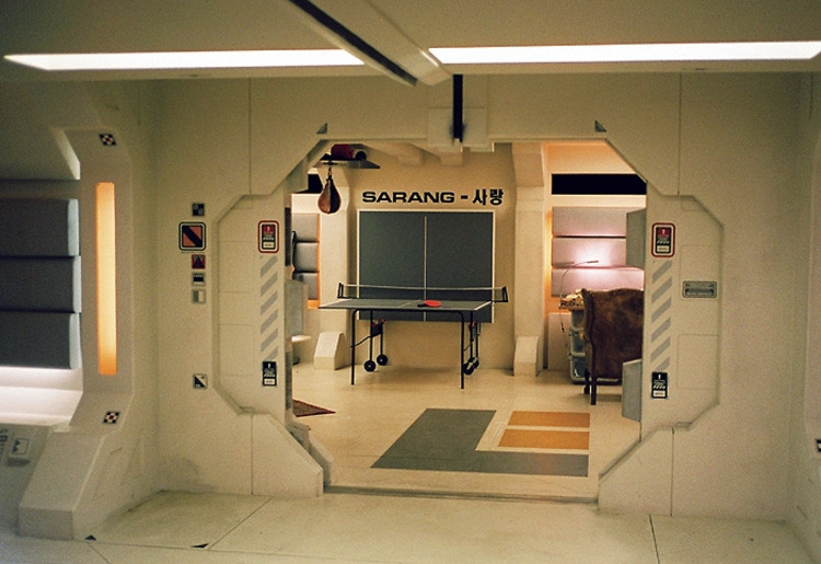 기지의 이름이 '사랑'이다. 눈에 떡하니 들어오는 저 한글의 자태가 매우 어색하면서도 오묘한 기분을 불러일으킨다. 이동진의 파이아키아에서 이 영화 리뷰를 잠깐 본 적이 있는데 감독 던컨 존스가 그 유명한 데이비드 보위의 아들이라는 것과 한국을 너무나도 사랑하고 특히 올드보이 영화의 광팬이라고 한다. 그는 영화 곳곳에 한국 사랑의 표식을 심어두었는데 기지 이름도 그렇고, 주인공이 영화에서 쓰고 다니던 캡 모자 옆부분에도 태극기 패치가 붙어 있다고 한다.(이 부분은 발견 못함. 눈이 좋은 분들은 꼭 한번 찾아보시길)