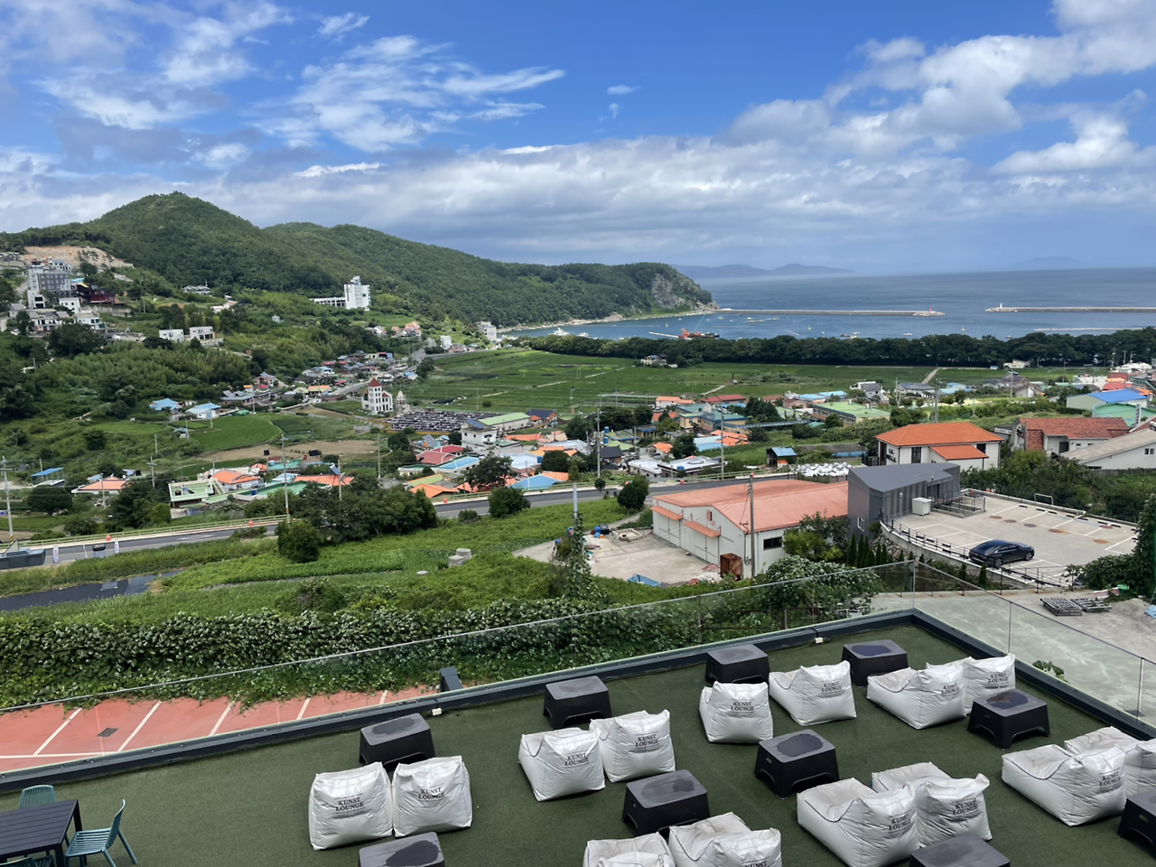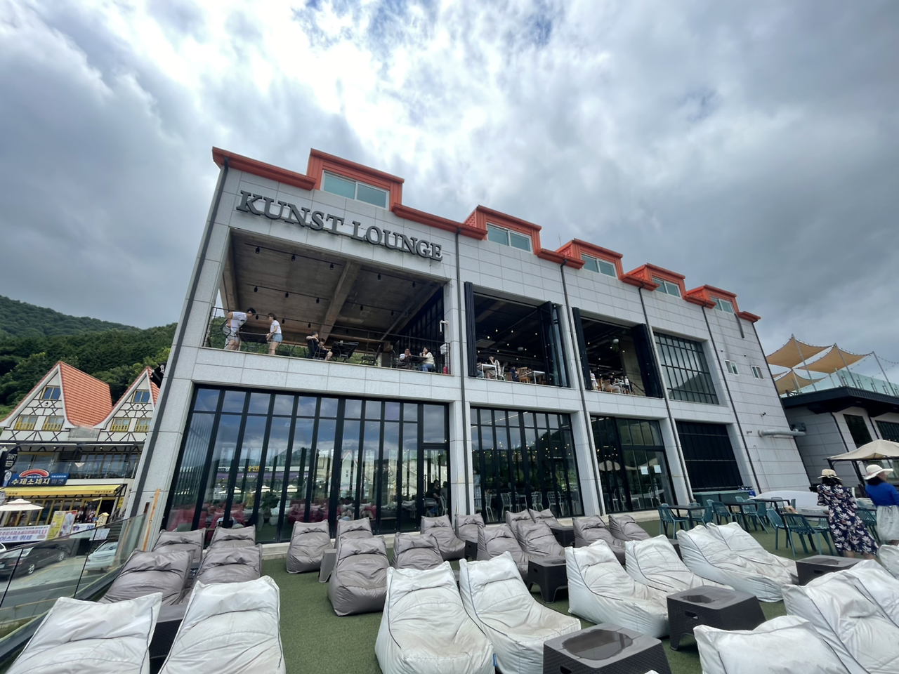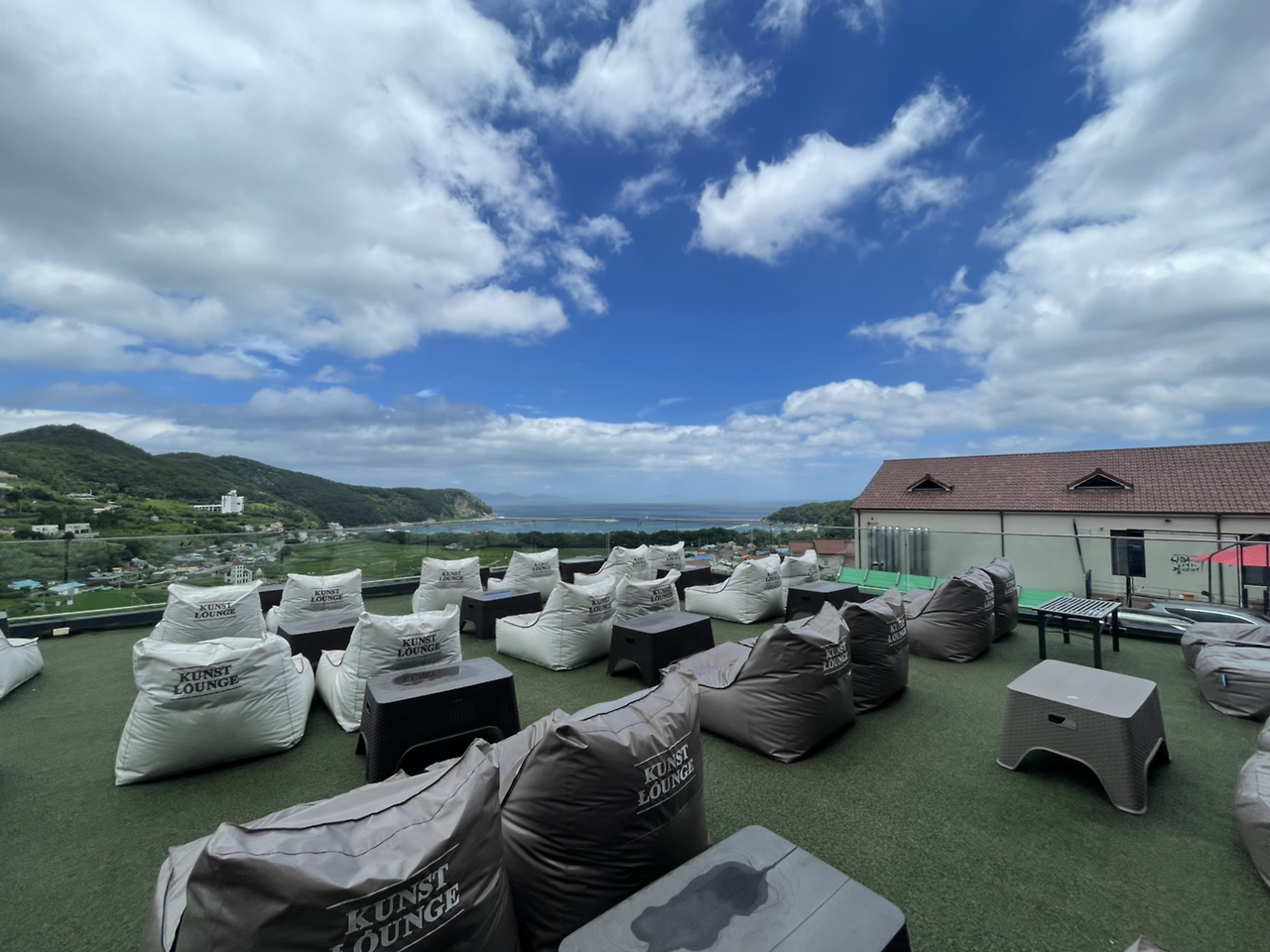 쿤스트 라운지는 규모가 꽤 컸고 1층 라운지 바깥으로도 저렇게 빈백이 놓여 있어 시원한 저녁에는