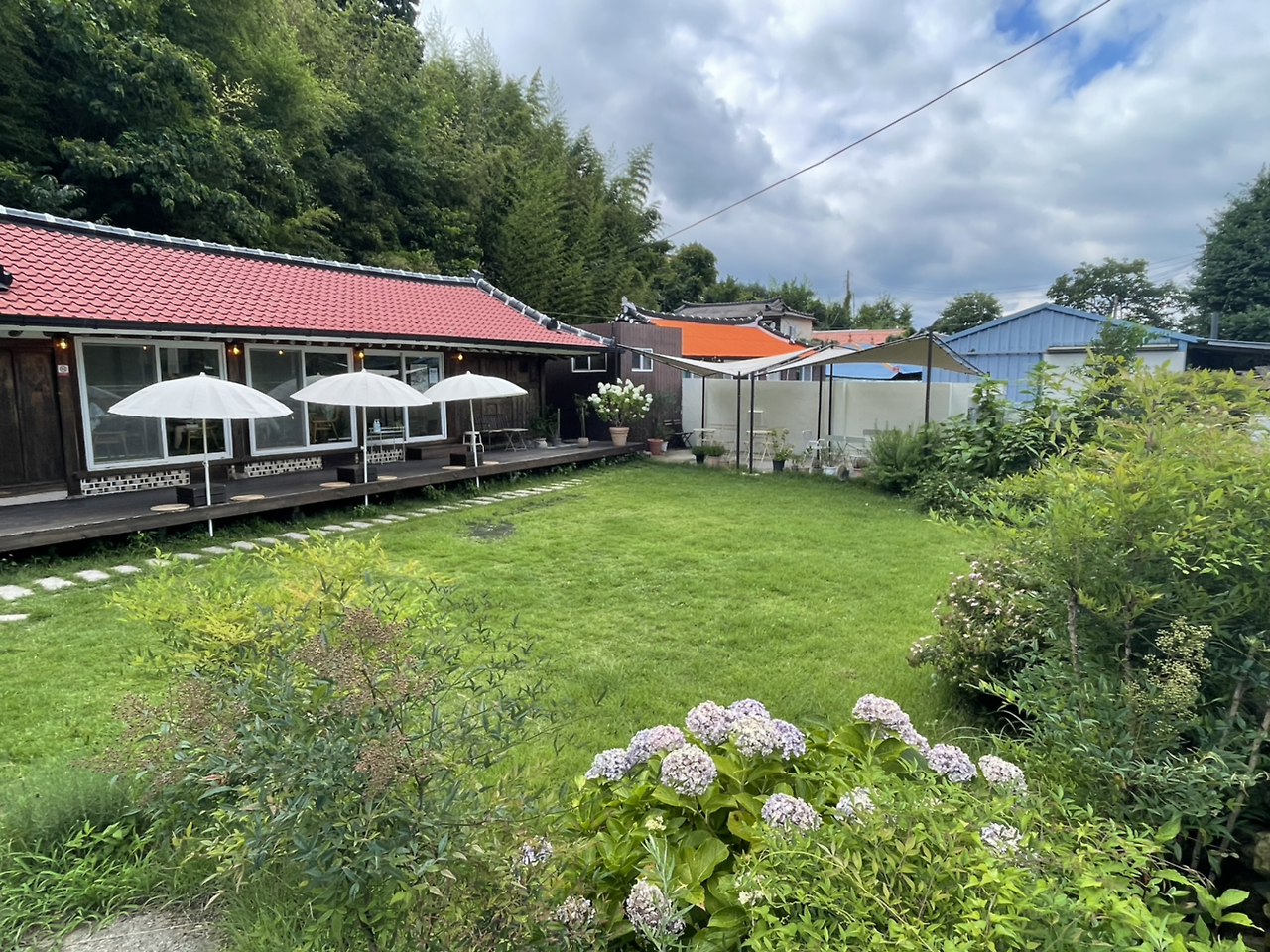 프라하나 독일에서 보았던 주황 지붕, 빨간 지붕의 전형적인 독일의 집들은 아니었지만 뭔가 우리의 자연과 이국적인 주황 지붕들이 만나 펼쳐지는 색감이 참 예쁘고 또 다른 매력을 발산했다. 보고 또 보아도 계속 카메라를 찍게 되는 마성의 곳.