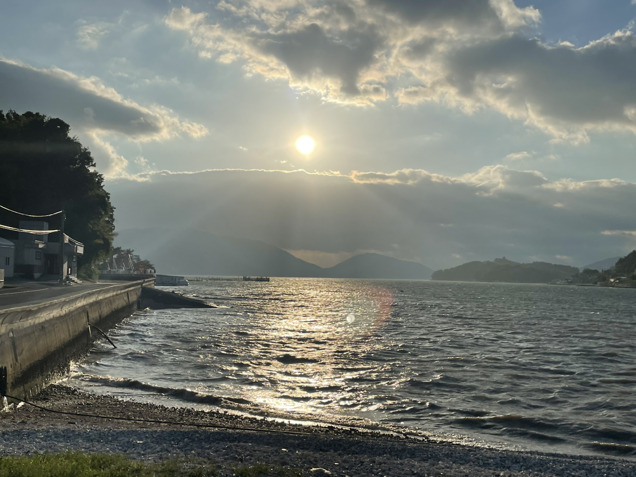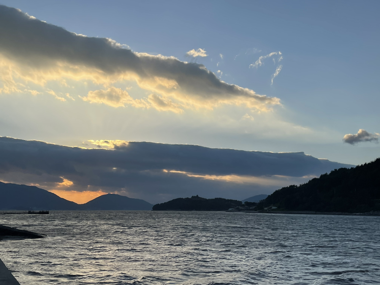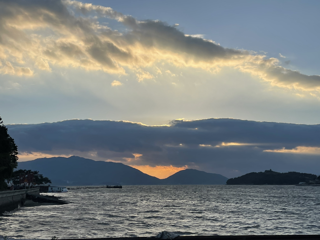 배가 두둑해져 나와보니 그제서야 식당 앞에 펼쳐진 바다가 보였고, 구름 사이에 오묘한 오팔 색을 뿜어내며 해가 뉘엿뉘엿 지고 있었다.