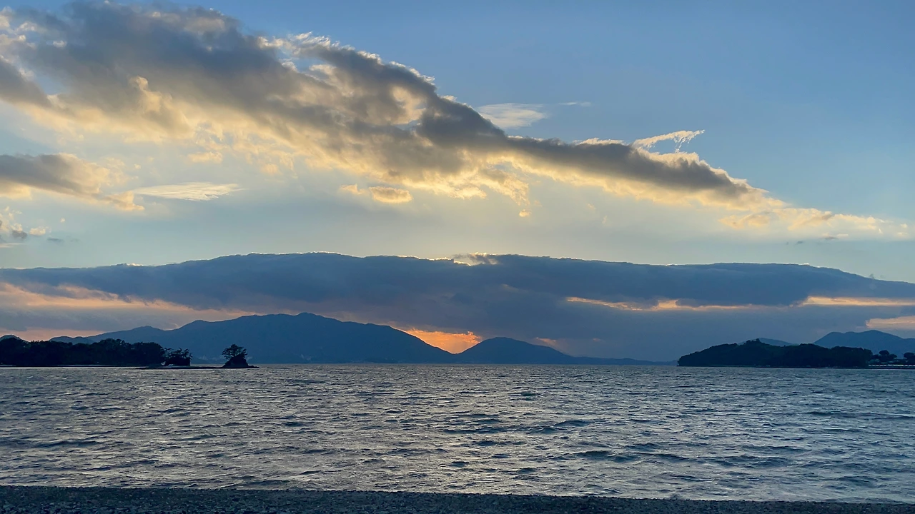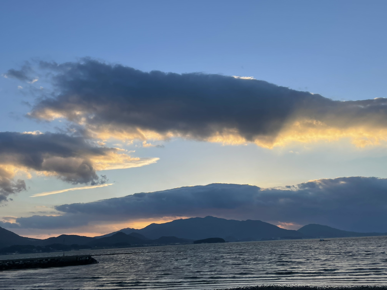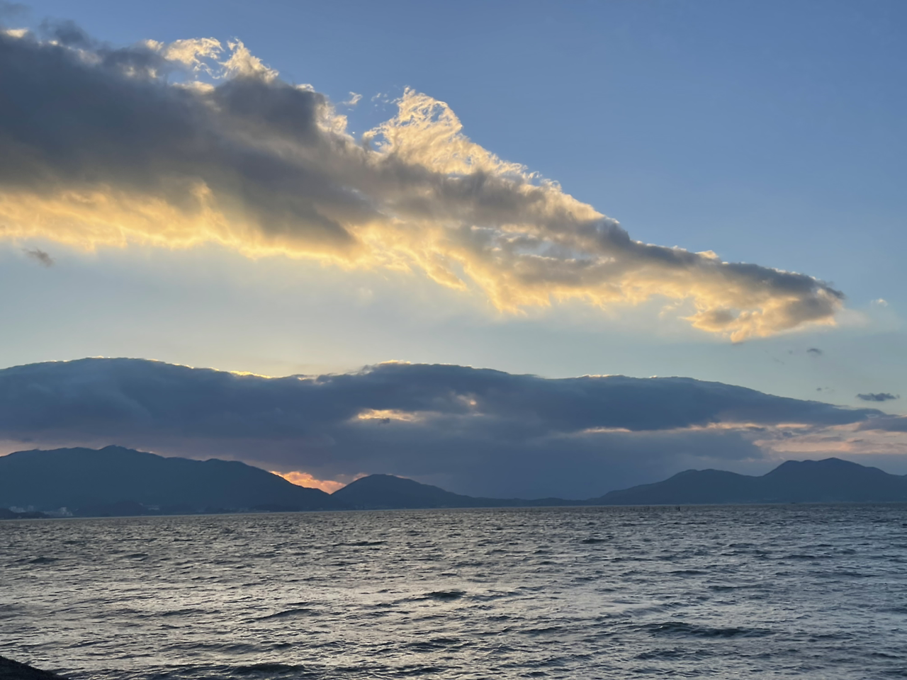 배가 두둑해져 나와보니 그제서야 식당 앞에 펼쳐진 바다가 보였고, 구름 사이에 오묘한 오팔 색을 뿜어내며 해가 뉘엿뉘엿 지고 있었다.