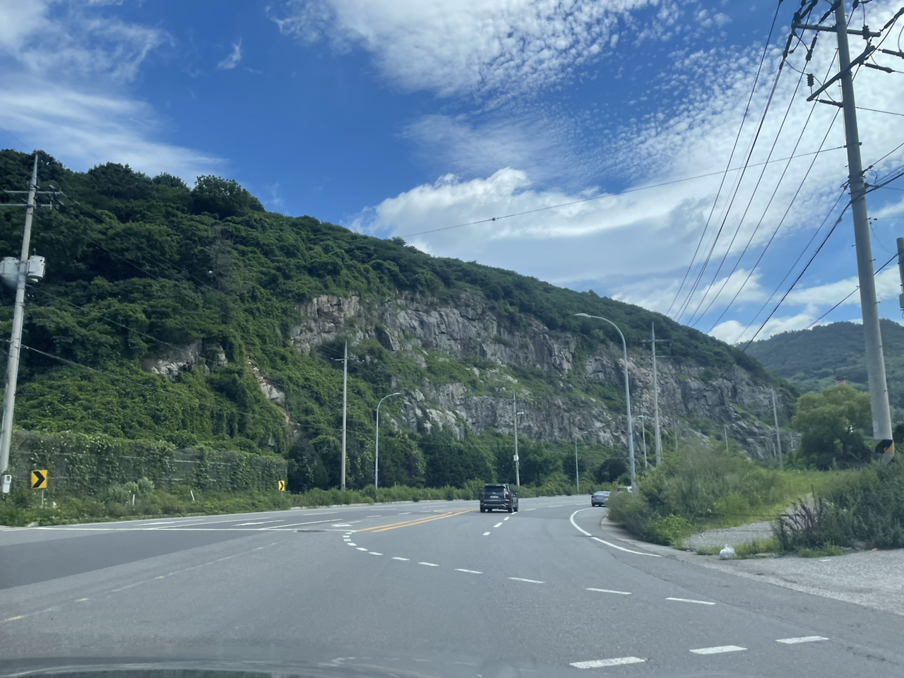도저히 참을 수가 없어서 차창을 내리고 사진을 찍은 게 이 정도다. 멈춰서 찍고도 싶었지만 차로 내달리며 맞는 바람을 포기하고 싶진 않았다.