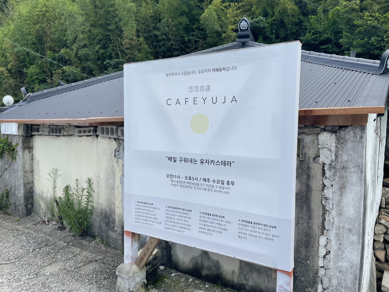 생각보다 아담한 규모의 카페였는데 그 비좁은 공간에 사람들이 꽉 차 있었다. 우리는 유자 주스와 유자 카스텔라를 주문했는데 아직도 잊기 힘든 달콤 새콤한 맛이 일품이다. 한적한 시골마을에 위치한 작은 카페가 잘되는 데에는 다 이유가 있다.