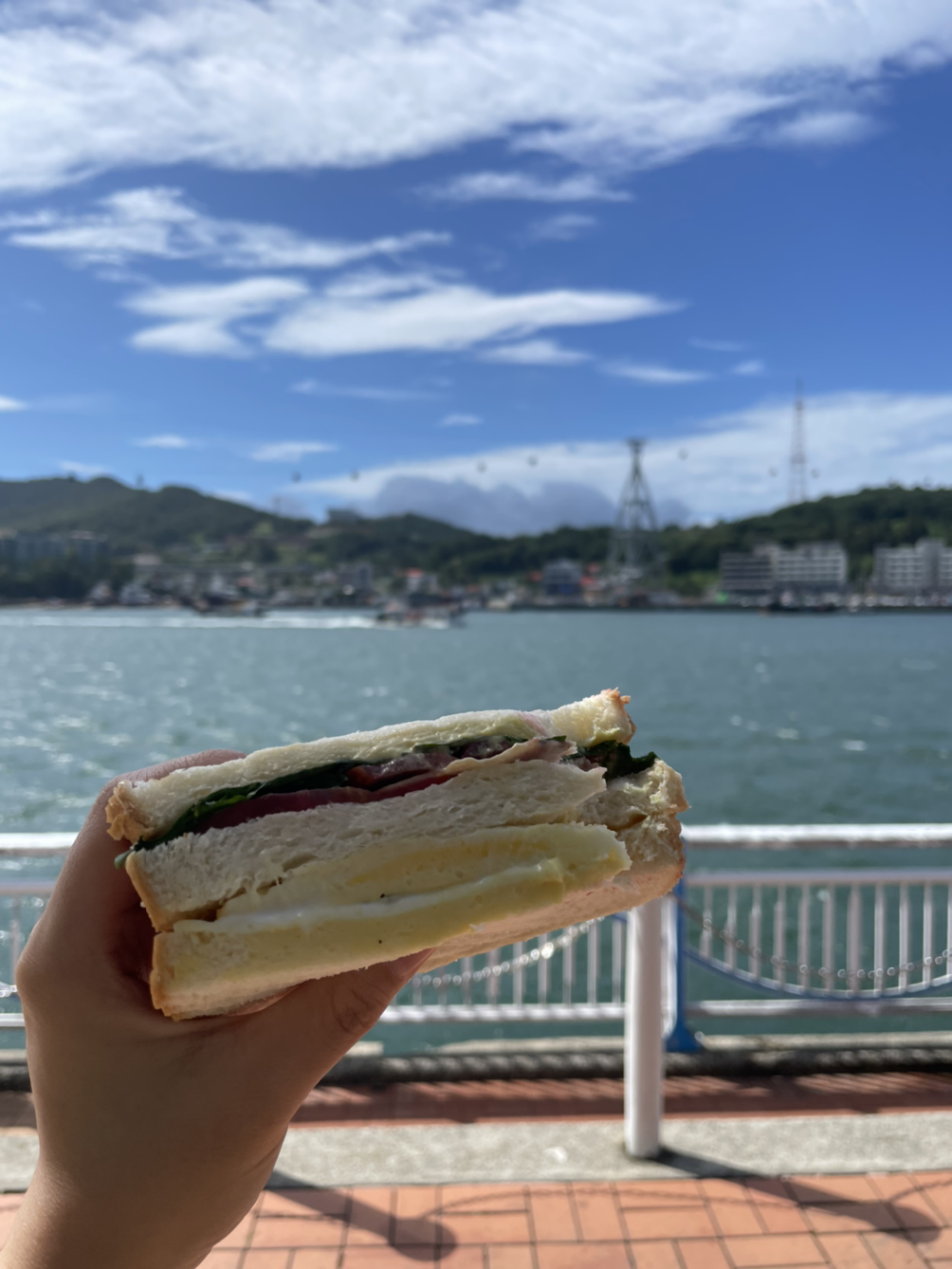 요트라도 타고 바다로 나가야 할 것만 같은 풍광이었다. 여러 가지 모양의 배가 들락거리고 왼편엔 케이블카가, 오른편엔 다리 위로 지나가는 여유로운 차들. 그 한가운데를 메우는 굼실대는 파도와 눈을 뜨기에도 힘들 만큼 불어대는 파란 바람, 쨍한 아침 햇살은 우리의 기운을 2000% 끌어올렸다.