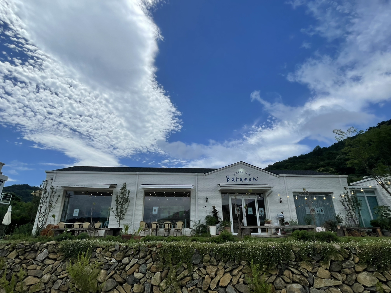 파란 하늘과 어우러지는 빈티지스러운 하얀 담벼락. 그리고 예쁜 돌담이 어우러진 이곳은 한눈에 봐도 핫플. 그 자체 :)