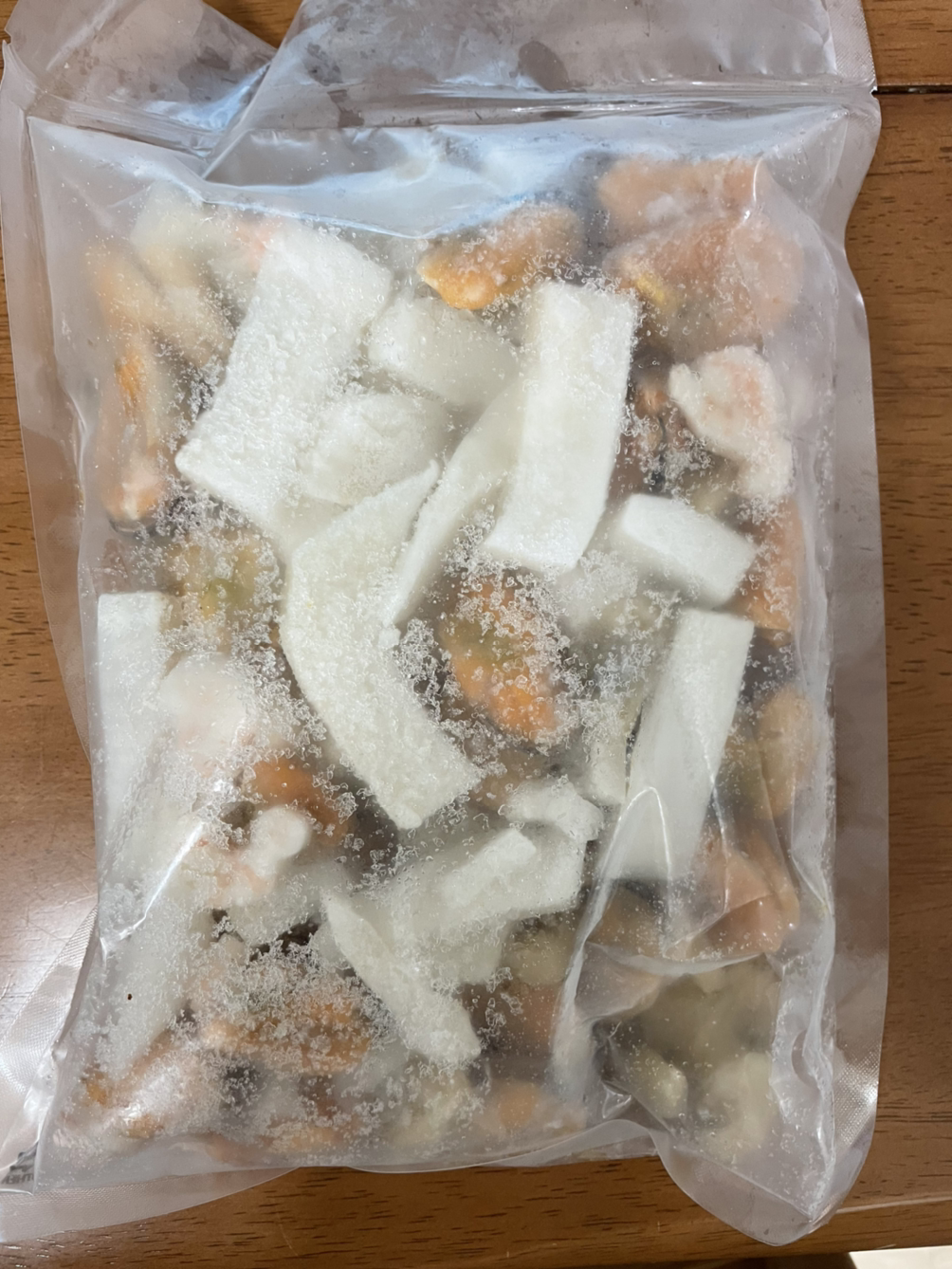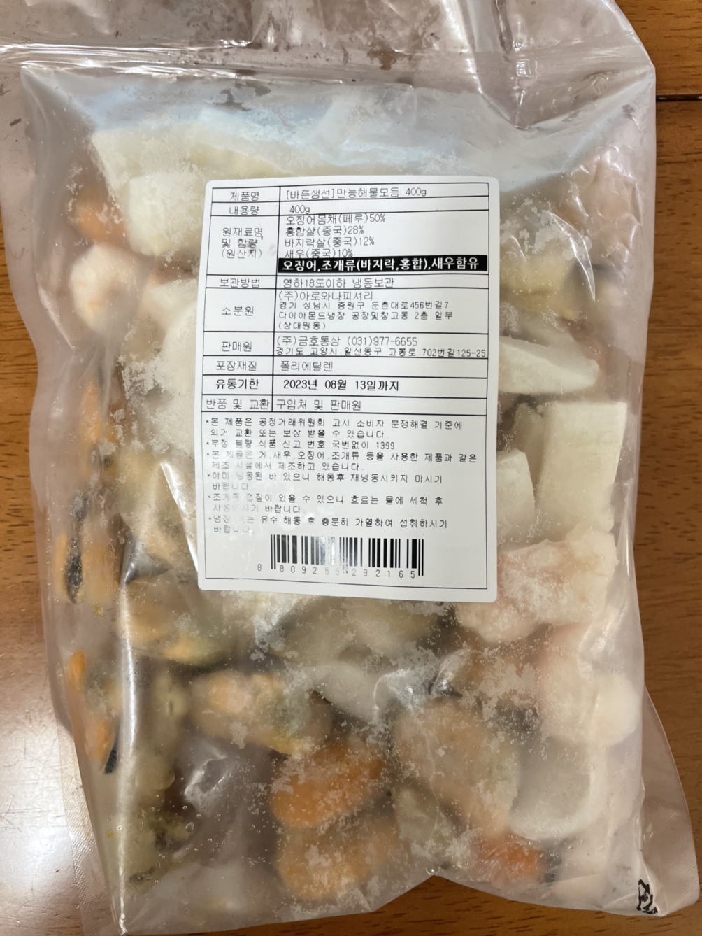 2. 해물 모둠 팩은 마켓 컬리에서 400g짜리를 샀는데 혼자 먹을 경우엔 더 용량이 적은 것을 사도 괜찮을 듯하다. 미리 꺼내어 해동하고 물에 씻어 채로 받쳐놓는다.