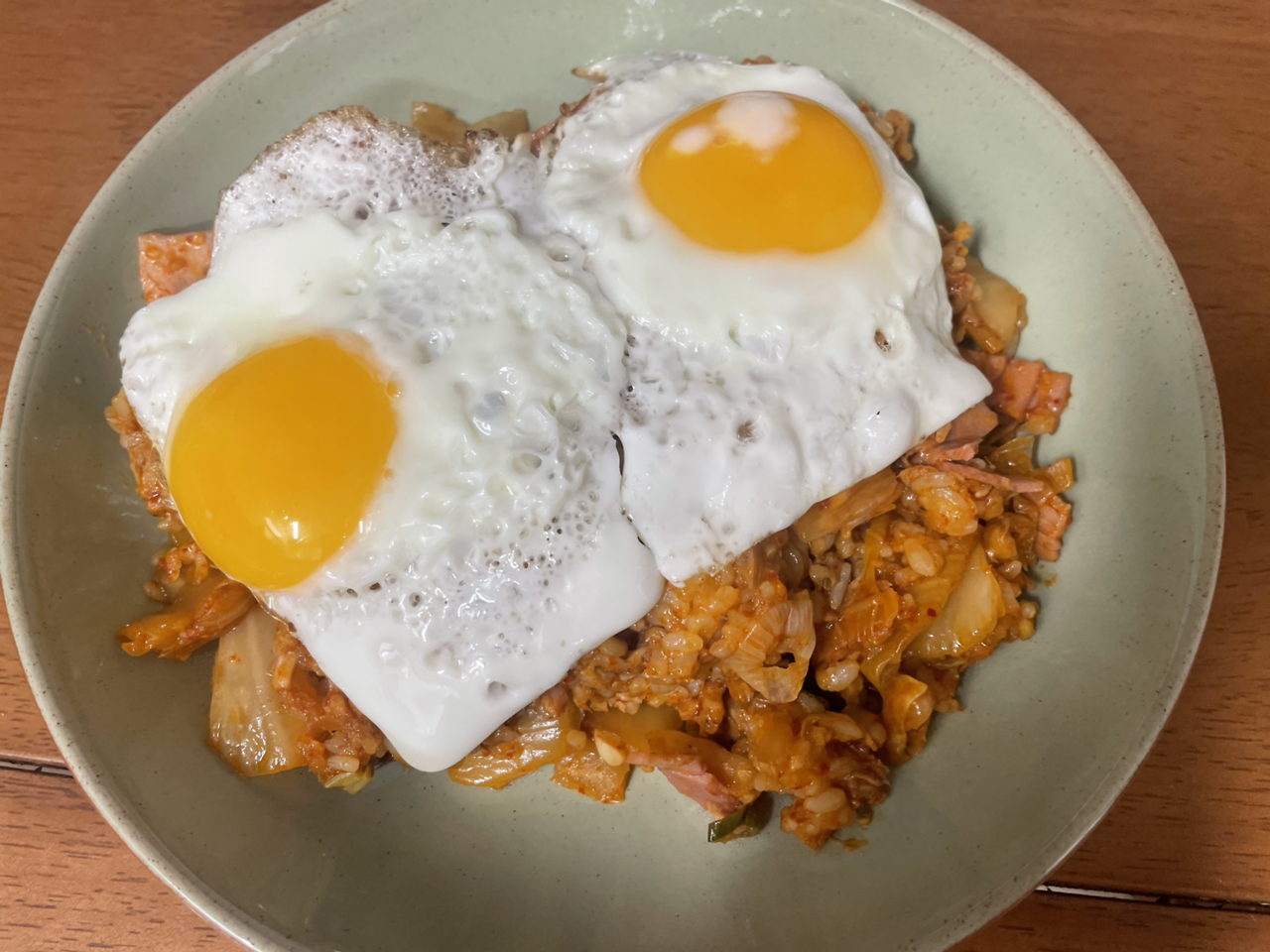 사이좋게 둘이서 나눠먹기 딱 좋은 2인분 김치볶음밥 완성!