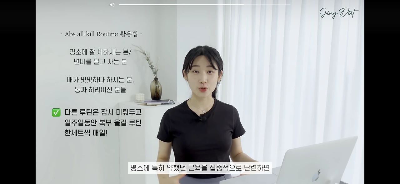 이번 편은 주로 플랭크를 기본으로 변형 동작이 많은 영상이다. 운동은 10분 짜리지만 아주 매콤하다. 매일 따라 하면 분명히 효과는 있을 듯하다.