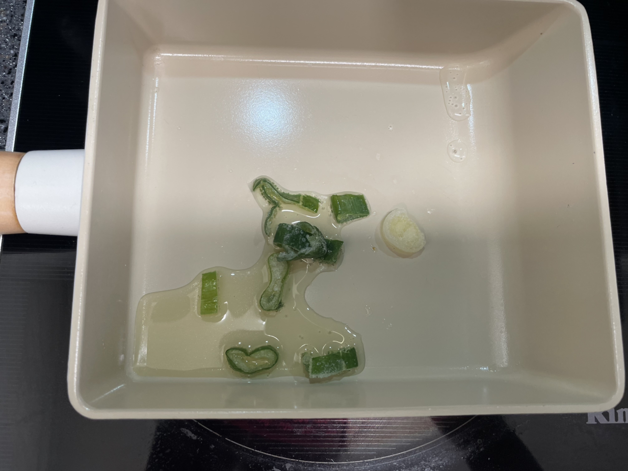 2. 파 조금을 넣고 파 향이 올라올 정도로 파 기름을 내어준다.