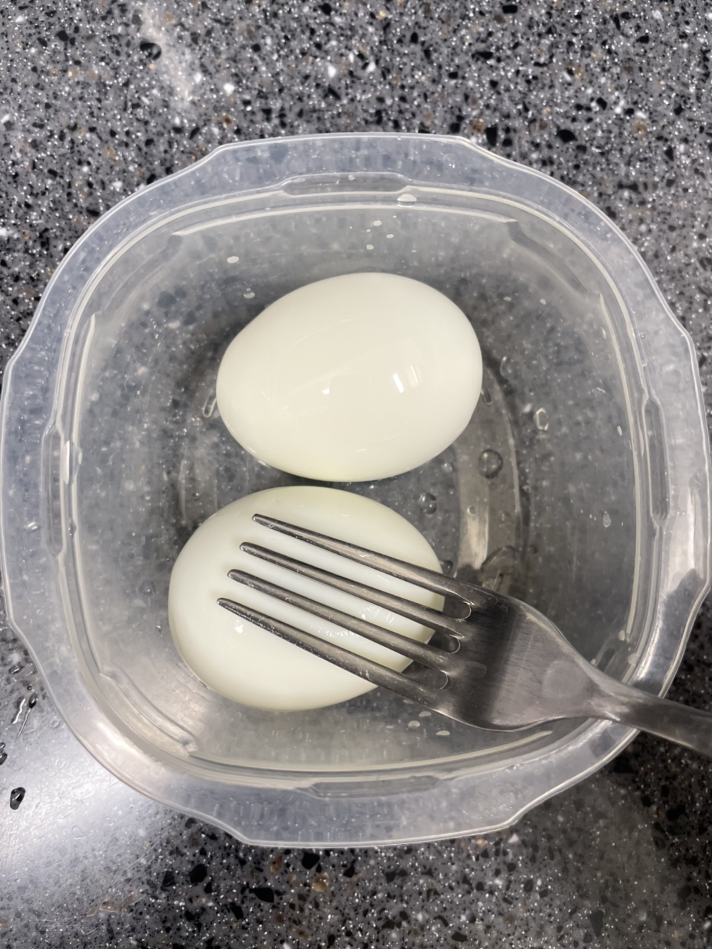 에그마요를 만들려면 가급적 완숙으로 익힌 게 좋다.