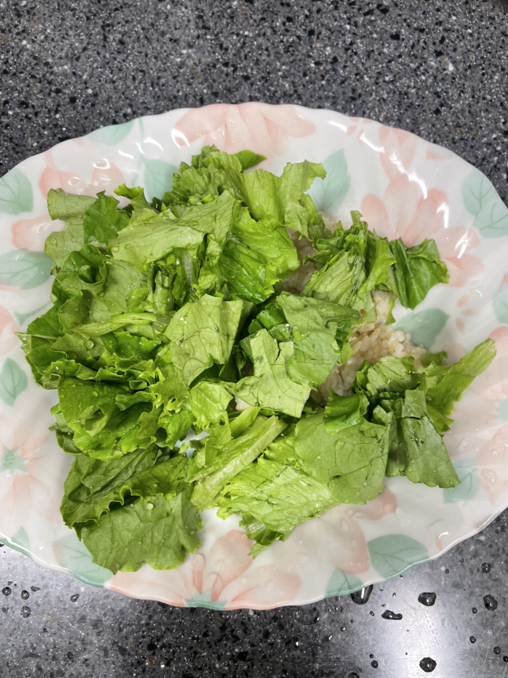 7. 쌈채소 4-5장을 적당한 크기로 찢어 얹어준다.