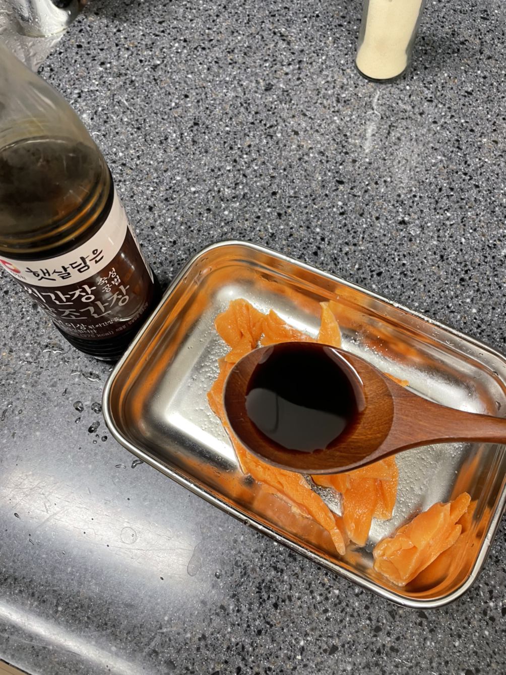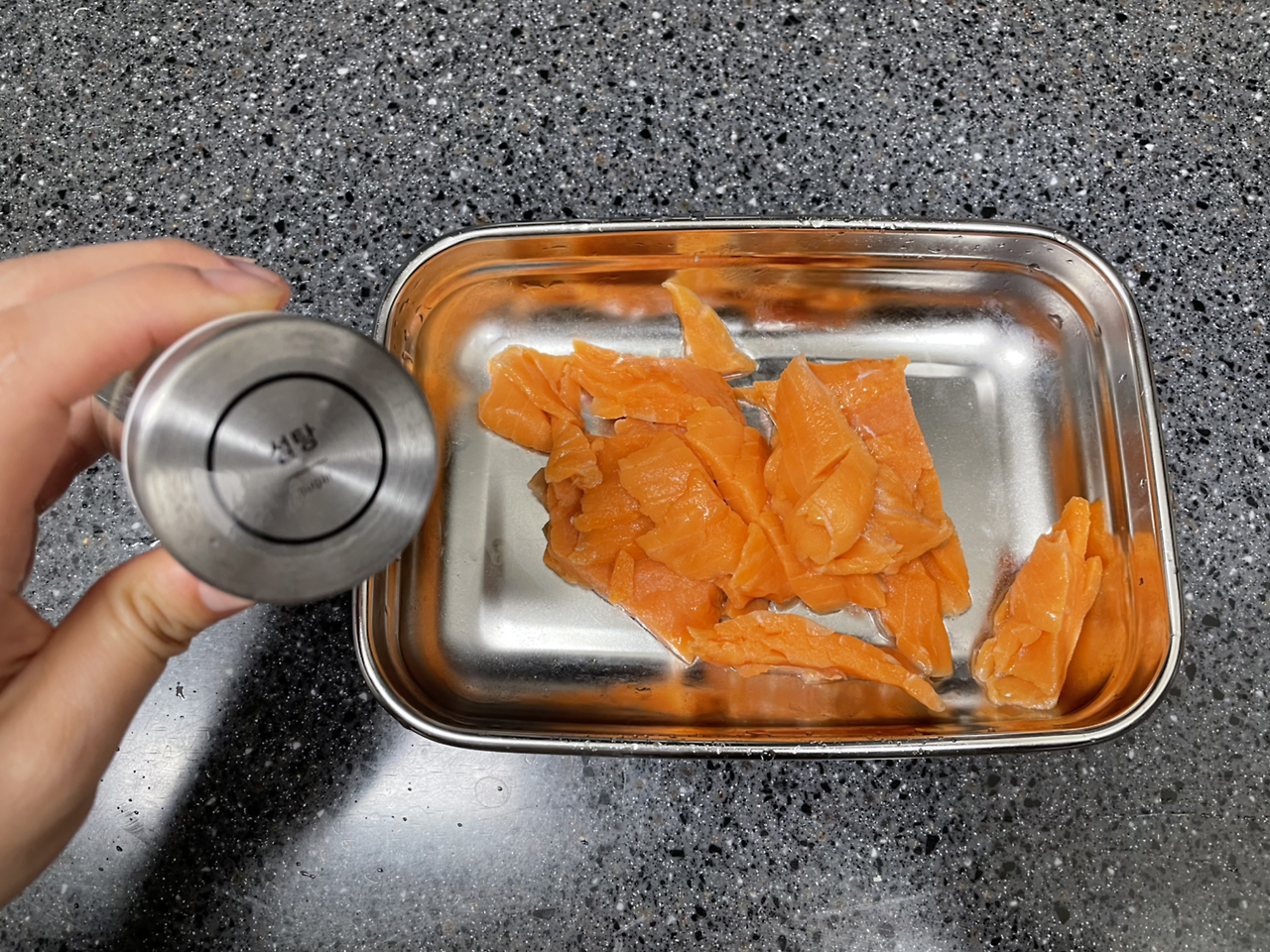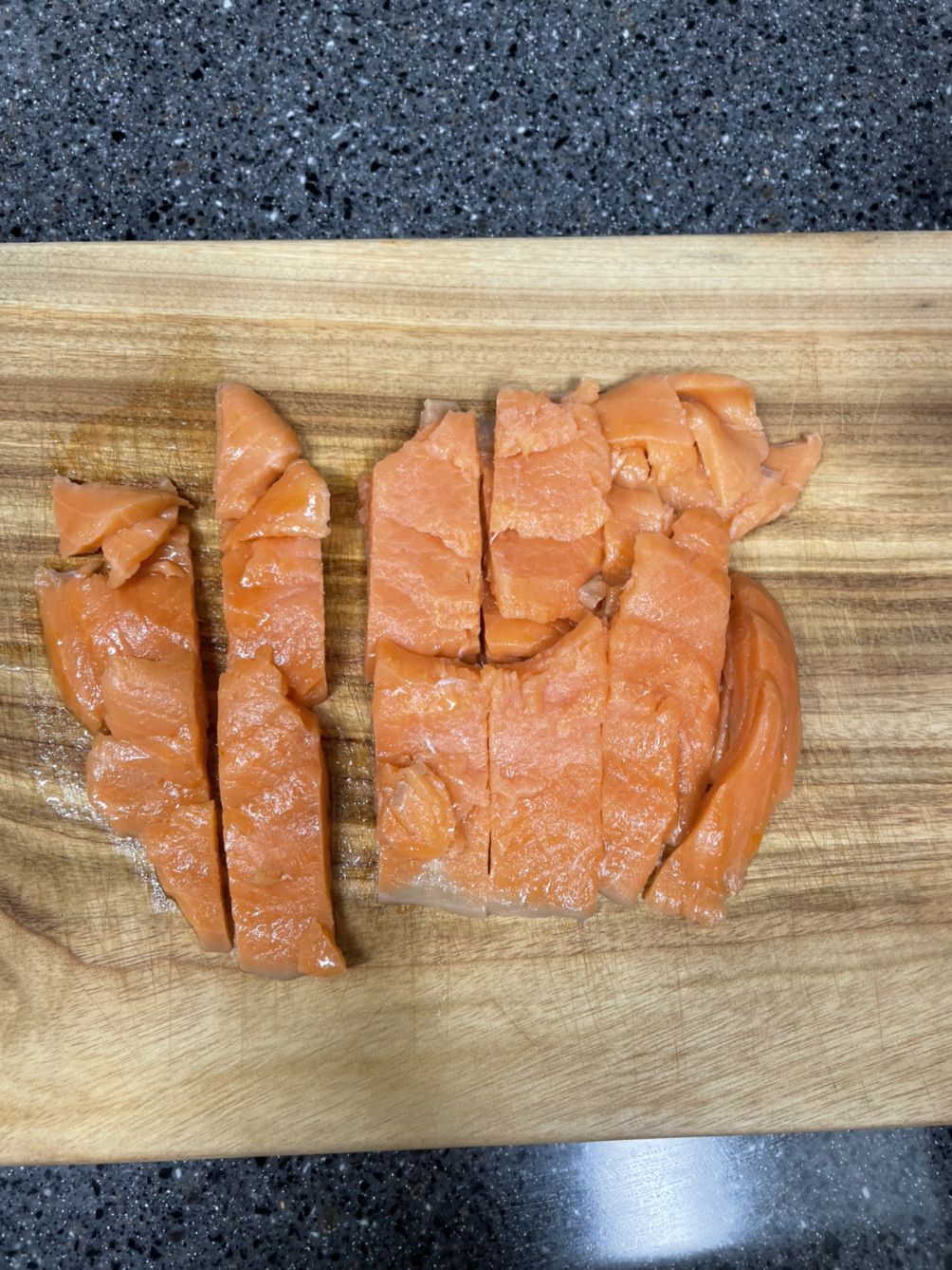 저번에 쓱배송으로 시킨 이마트 트레이더스 훈제 연어를 해동시켜 준비한다.
