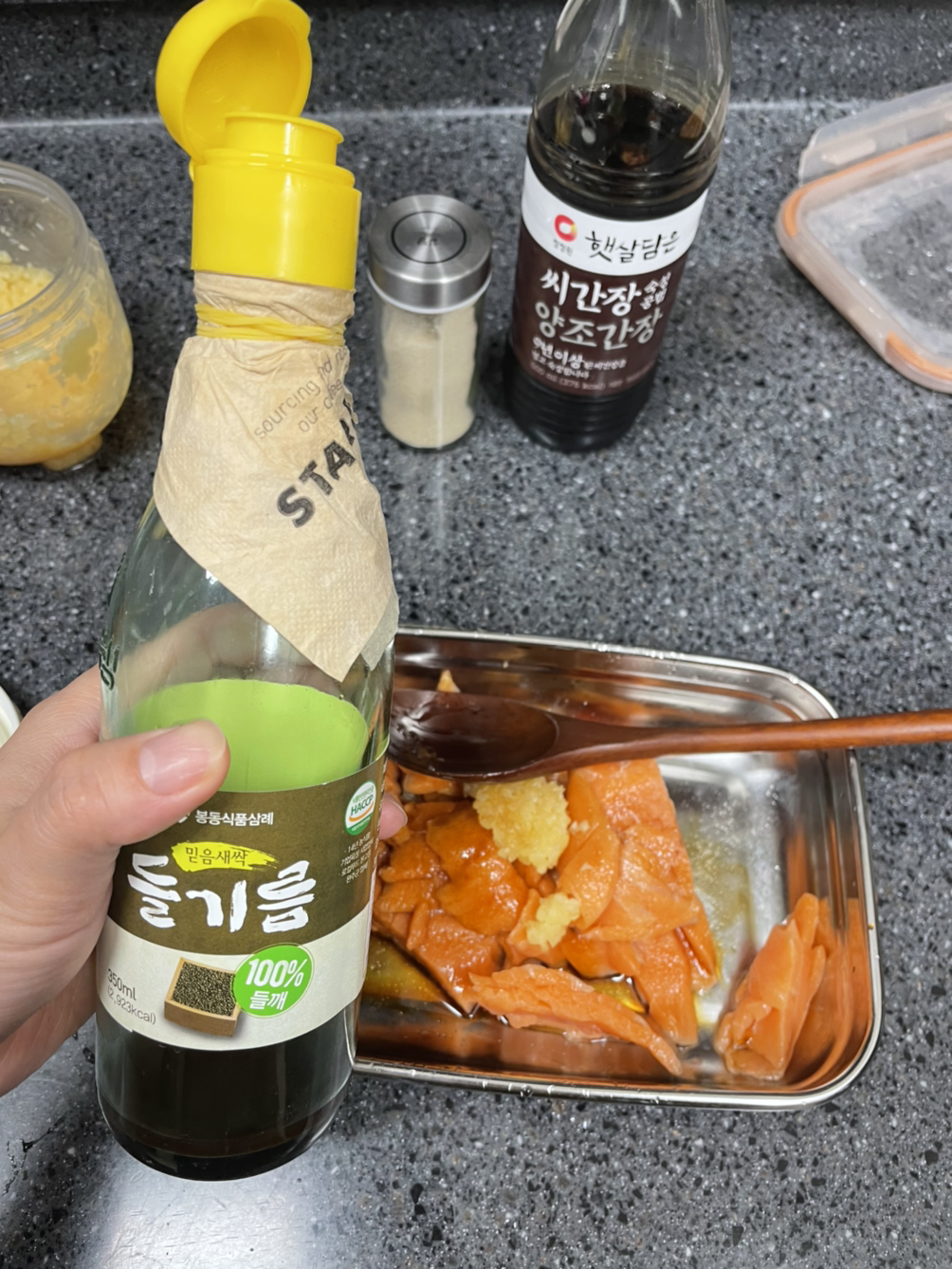 4. 들기름 한 스푼 휘휘 둘러준 후