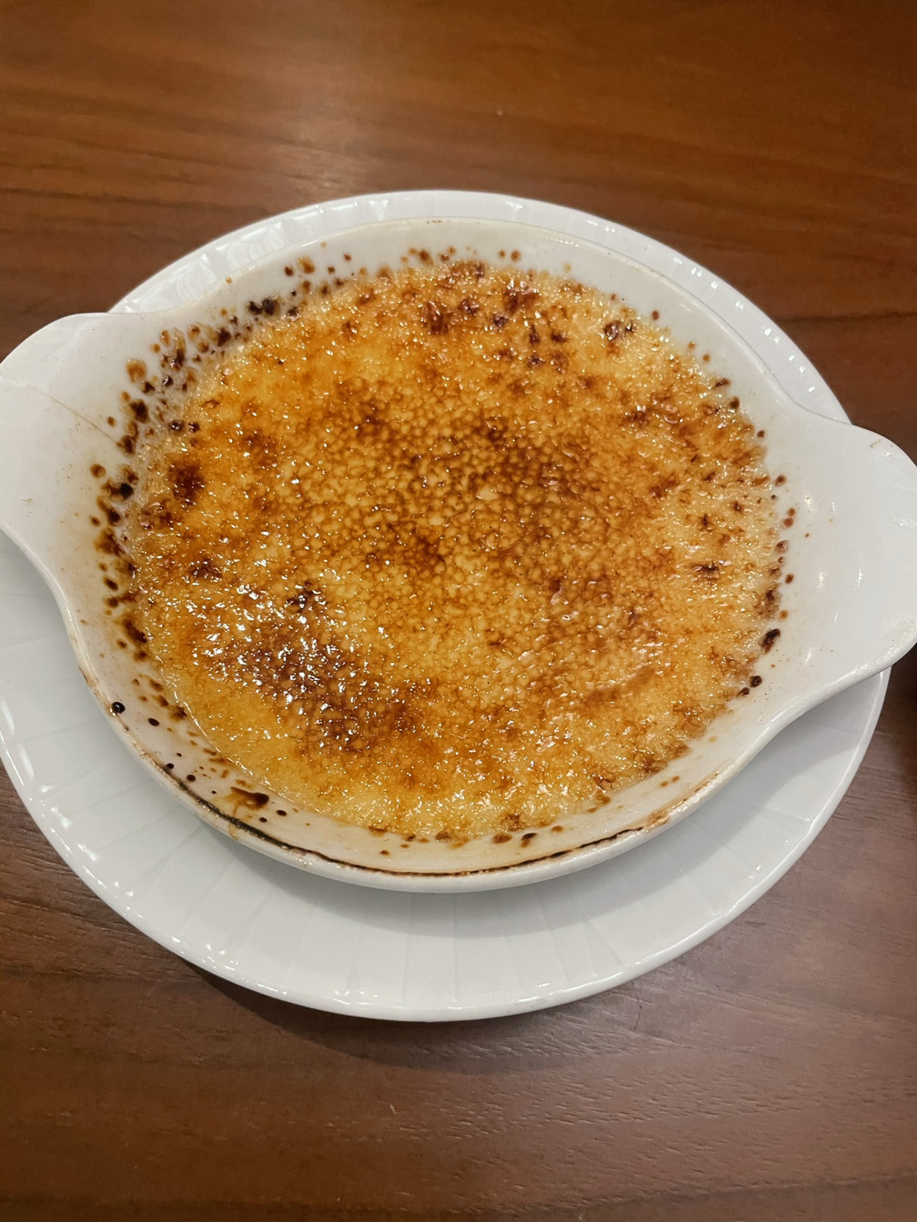 카라멜라이징 되어 바삭하게 코팅된 겉면을 두드려 깨트리면 속 안엔 부드러운 커스터드가 수줍게 드러난다.