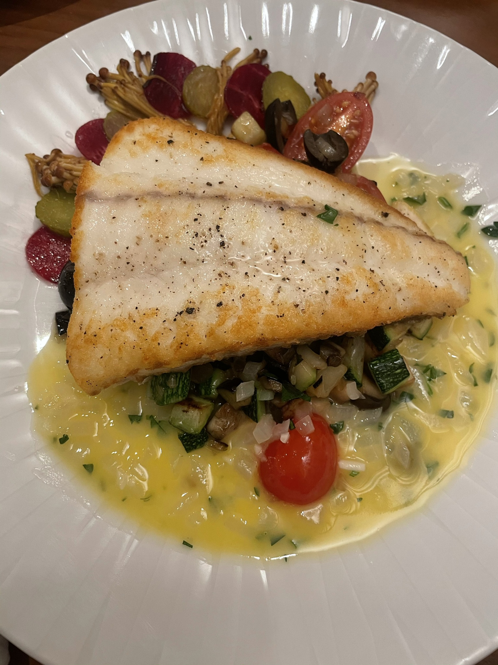 나는 두 번 다 메인 요리로 광어 스테이크를 주문했다.