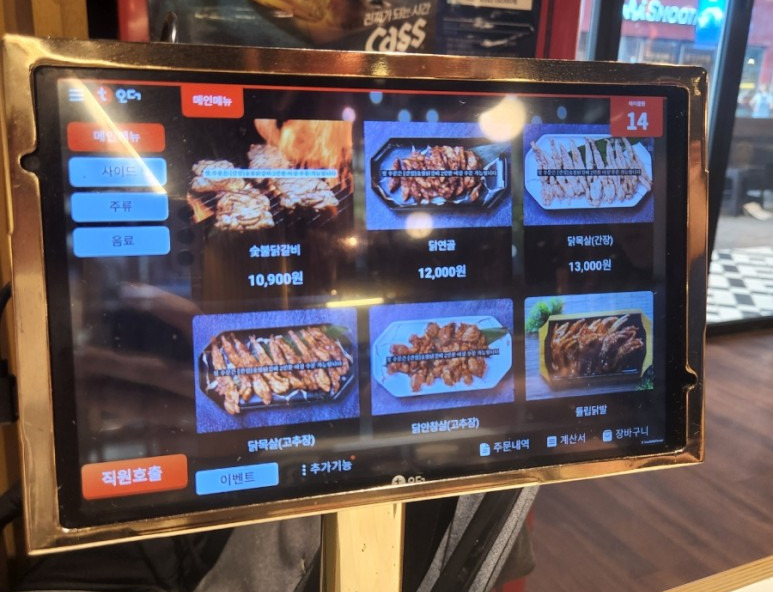 주문은 이렇게 키오스크로 자리에서 주문할 수 있다.