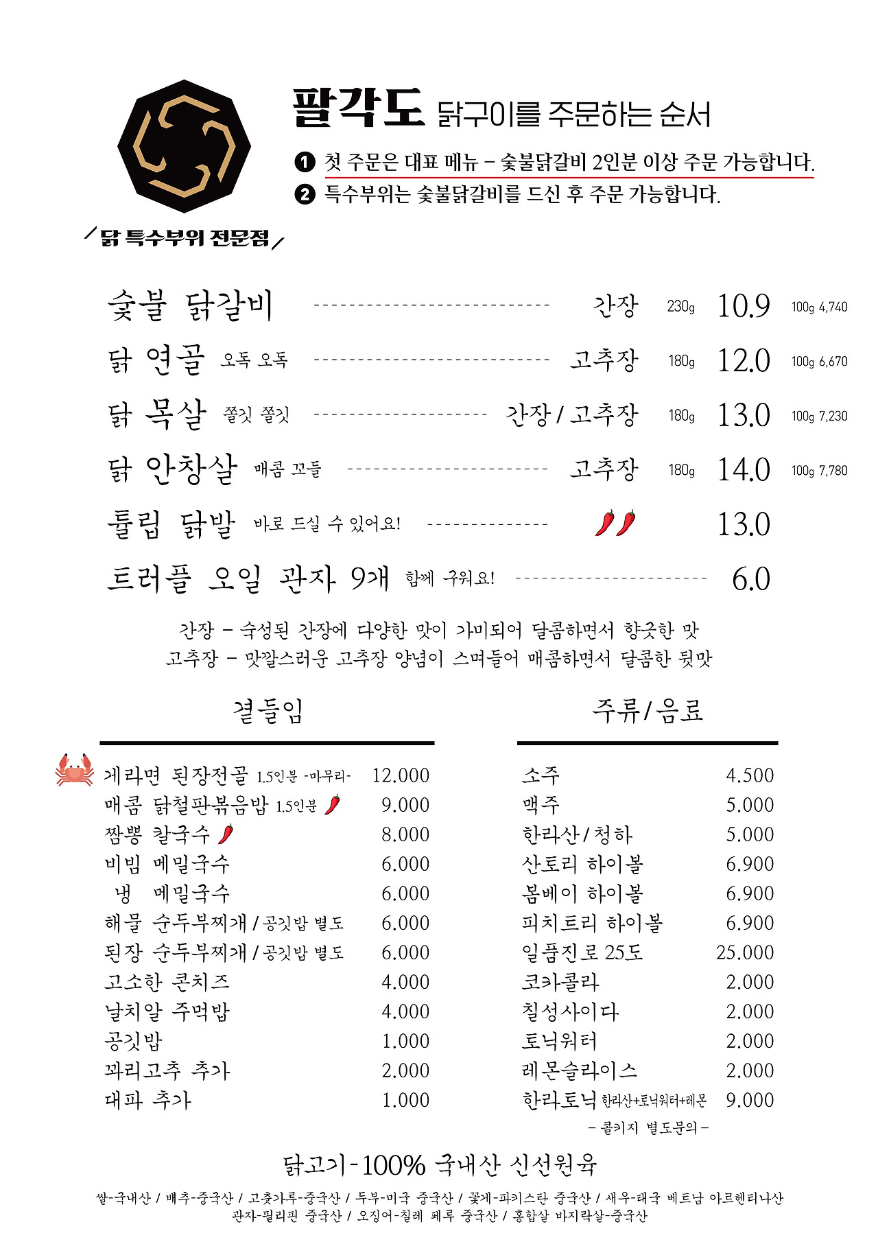 숯불 닭갈비는 2인분 이상부터 주문 가능하다니 참고!