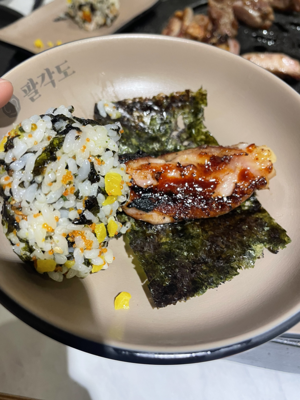 우리는 숯불닭갈비 3인분과 날치알 주먹밥을 주문했다.
