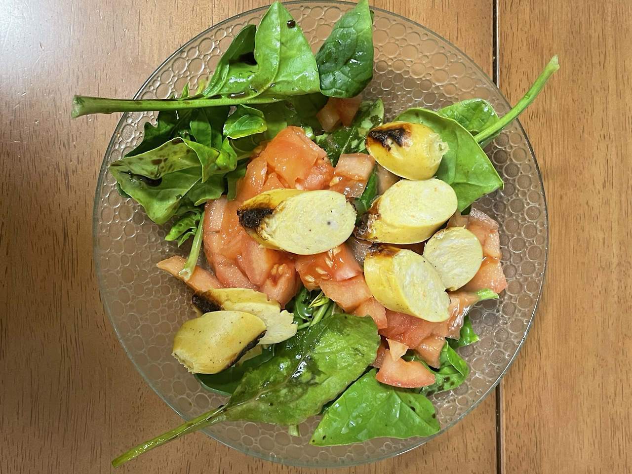 주로 요즘은 토마토를 올리브유에 볶아 먹었는데 이번 샐러드엔 데친 토마토를 넣어본다. 날씨가 추워지니 찬 샐러드보다는 더운 샐러드가 몸을 보호하는 느낌이 든다.