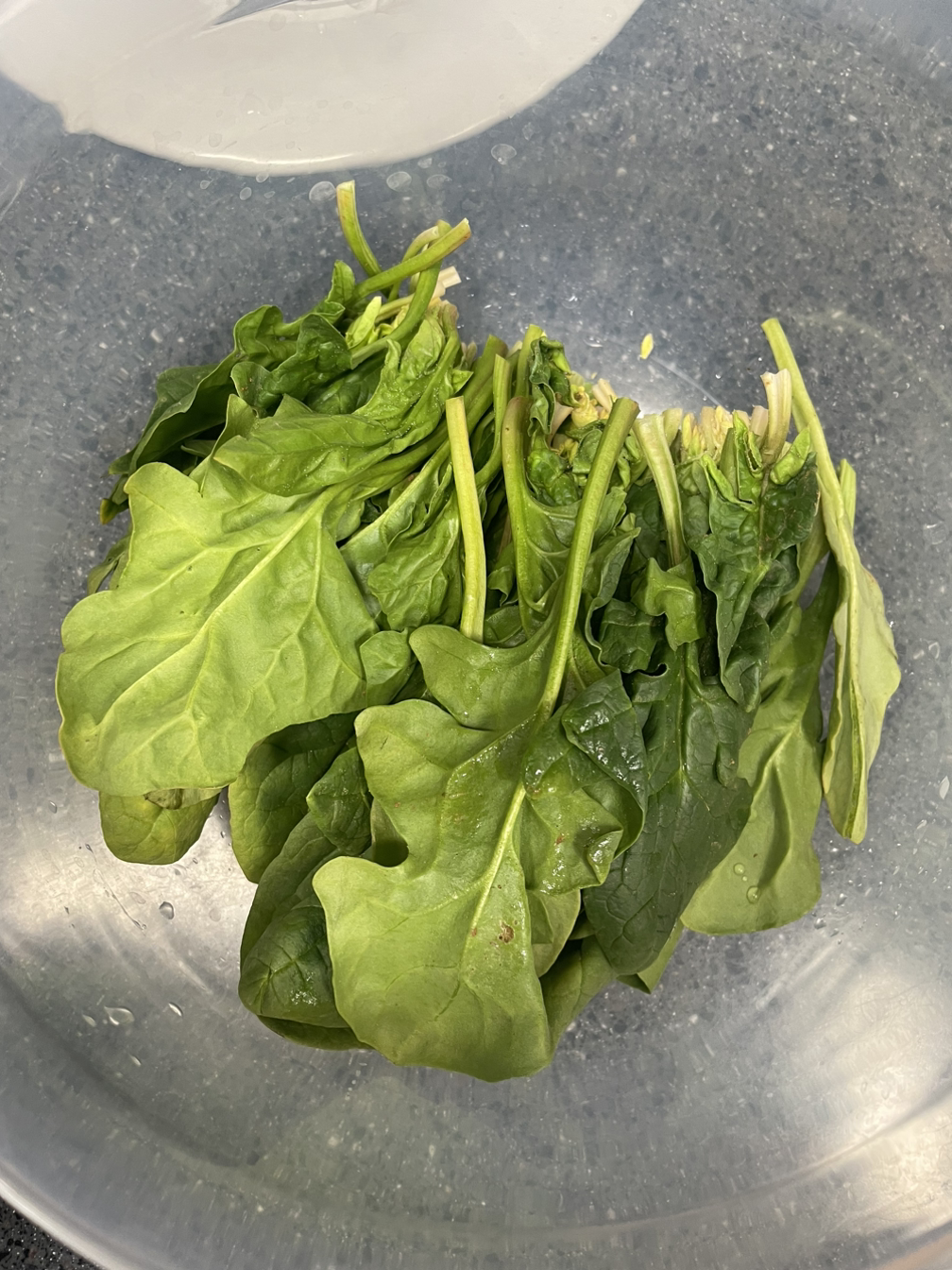 볼에 시금치를 담아주고