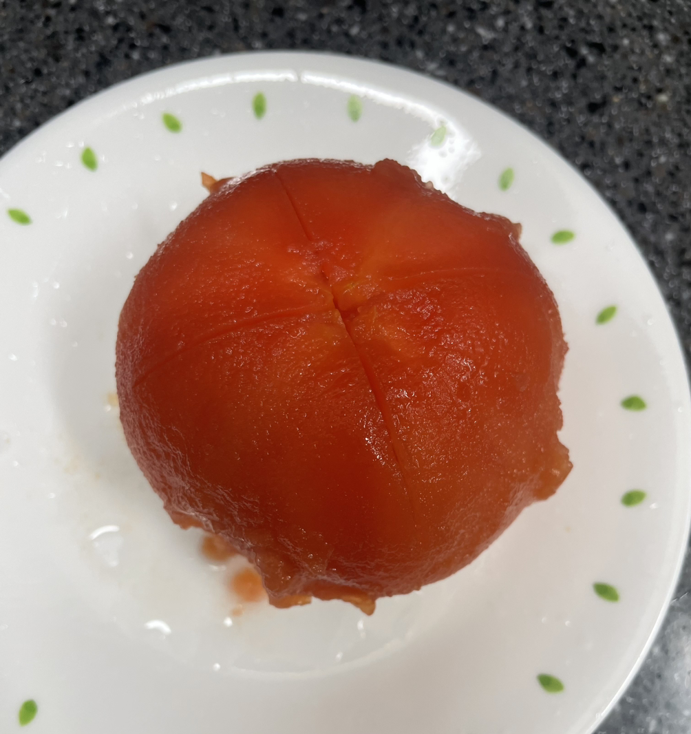 깔끔하게 벗겨진 토마토를 잘게 자른다.
