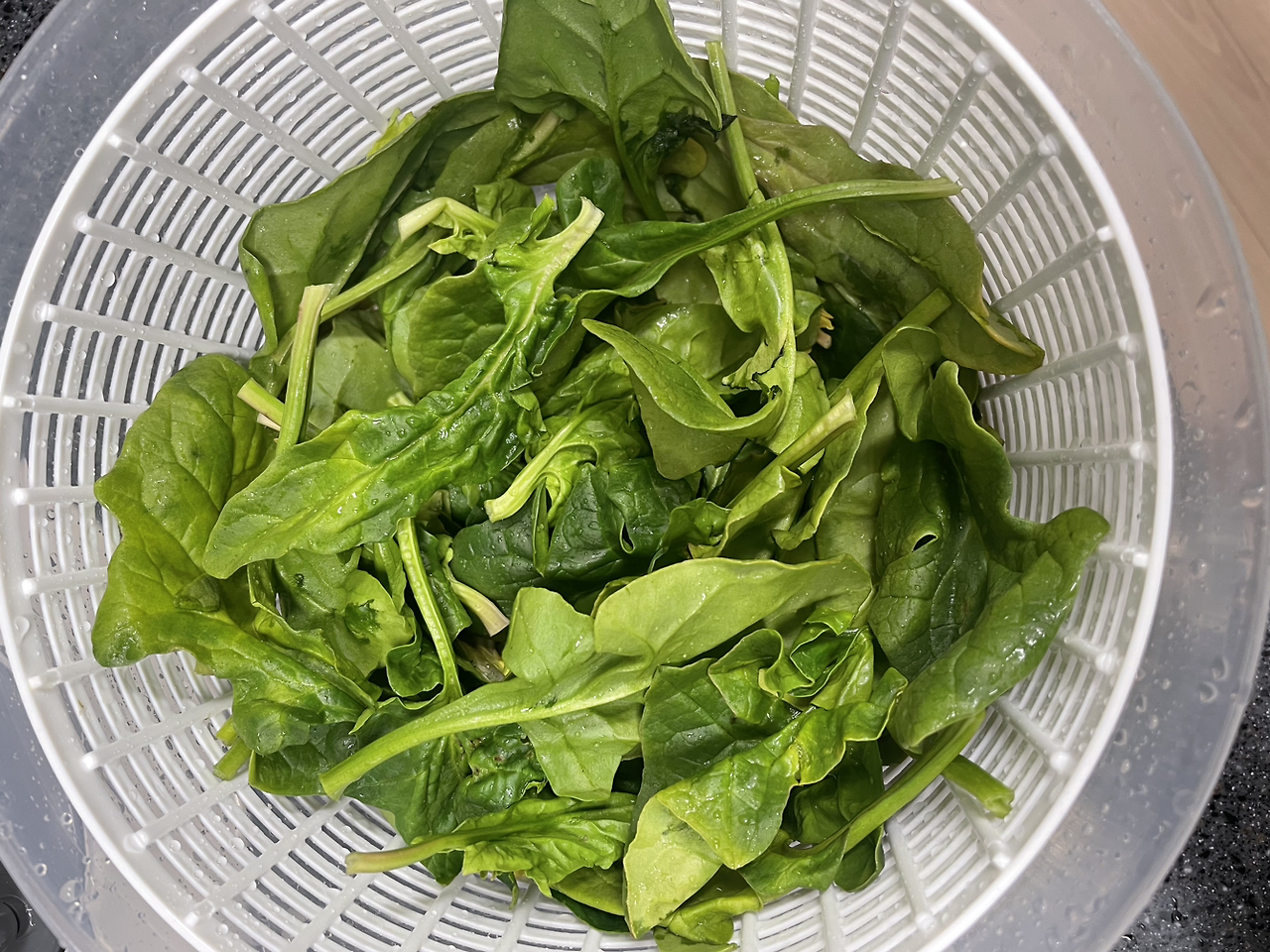 흐르는 물에 깨끗이 2-3번 씻어 야채 탈수기로 물을 빼준다. 흙 물이 많이 빠진다.