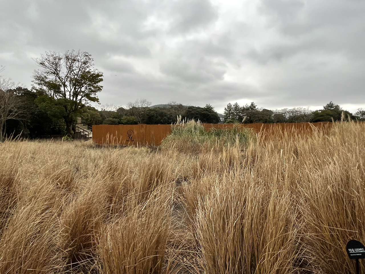 바깥 전경은 이렇게 분위기 있는 큰 나무와 잔디 정원 그리고 그 너머에 낮게 깔린 구름과 바다가 하나로 뒤섞인 푸르름이 어우러져 흐린 날씨에도 운치가 느껴졌다. 다른 계절에 오면 또 색다른 느낌일 듯하다.