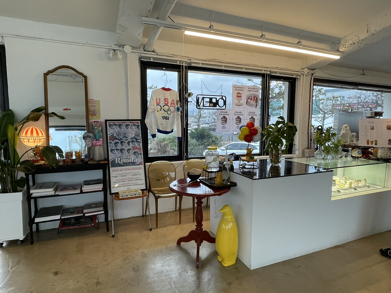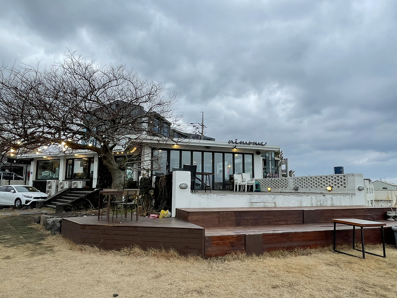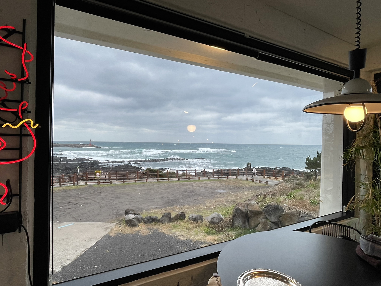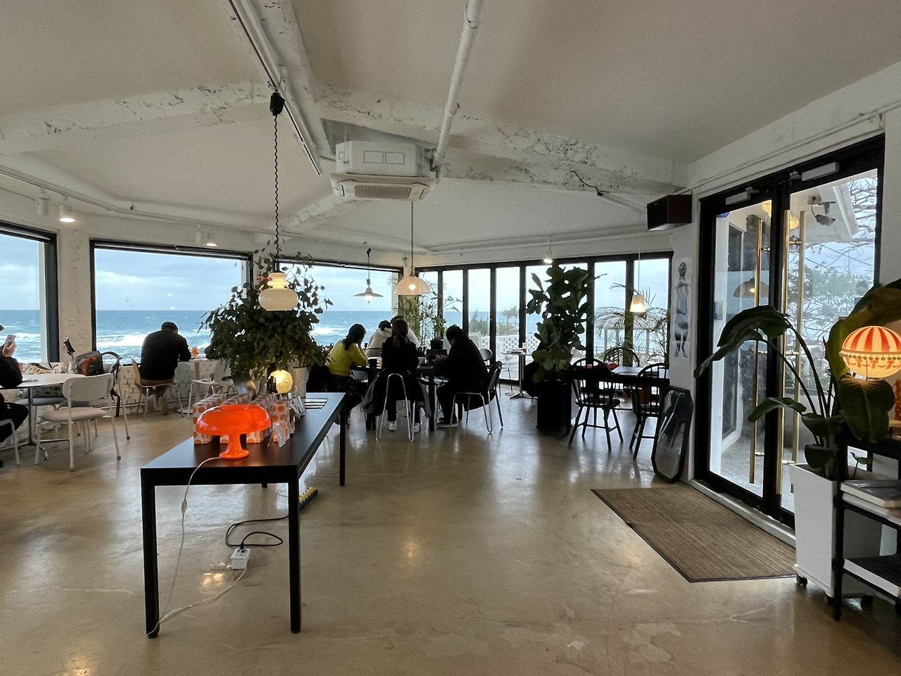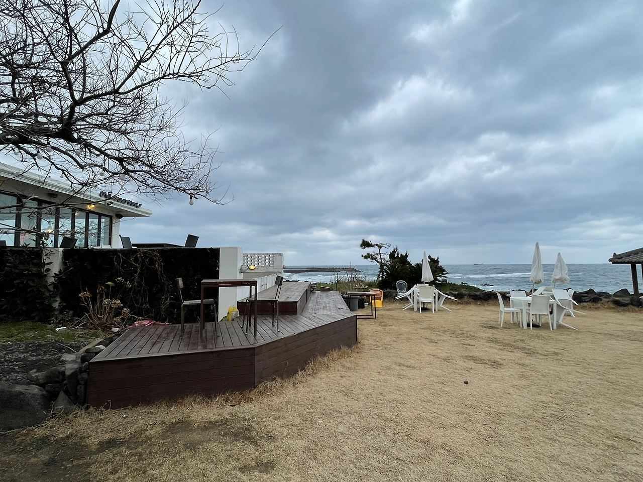 우리가 도착했을 땐 날씨가 그리 좋지 않아서 빨리 실내로 들어가고 싶었는데 마침 한 숨 돌리기에 딱 적합한 곳이었다. 주차 공간도 협소하지 않았고, 생각보다 그렇게 사람이 많거나 다닥다닥 붙어 앉는 공간이 아니라서 바다 전망을 느끼기에도 좋았다.