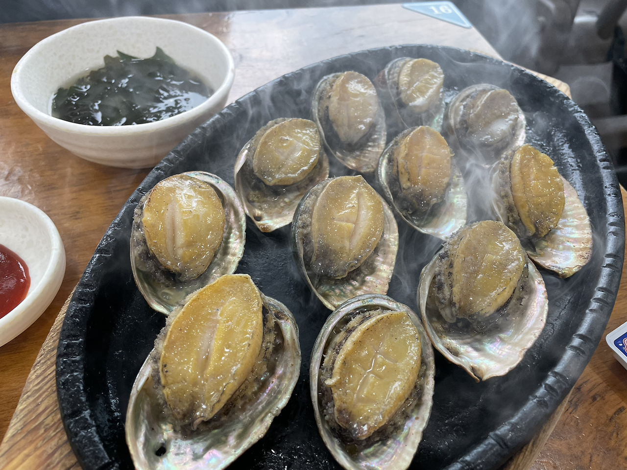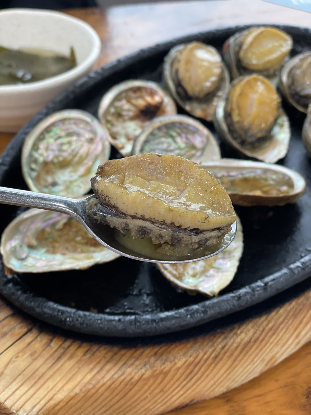 윤기가 좔좔 흐르는 전복은 옆에 있는 다양한 버전의 소스와도 함께 찍어먹을 수 있고, 버터를 녹여 버터구이처럼 먹을 수도 있었다. 탱글탱글한 전복이 입안 가득 들어올 때 퍼지는 그 짭조름하면서도 고소한 풍미가 내 위장을 요동치게 했다. 먹으면서도 배가 고파서 계속 들어가는데 느끼하지 않아서 그런지 먹고 나서도 굉장히 깔끔하고, 몸보신을 잘했다는 기분이 드는 좋은 음식이었다.