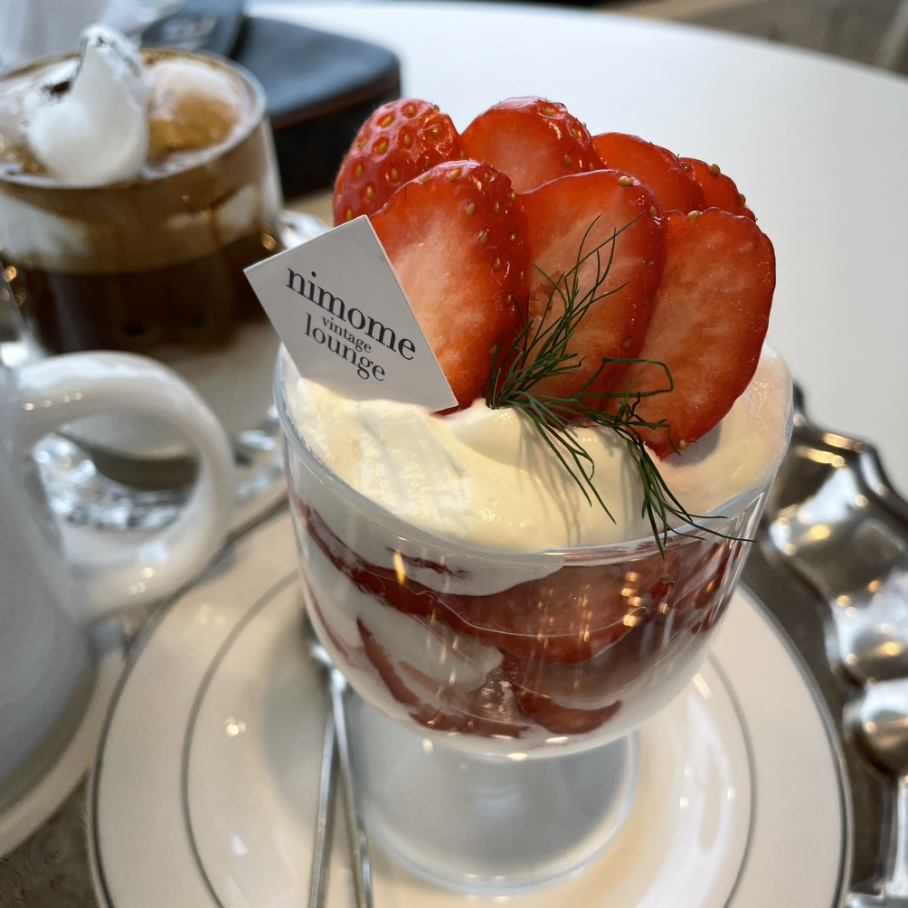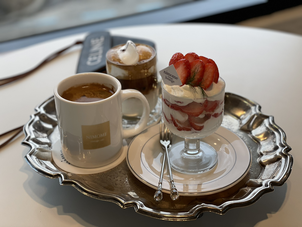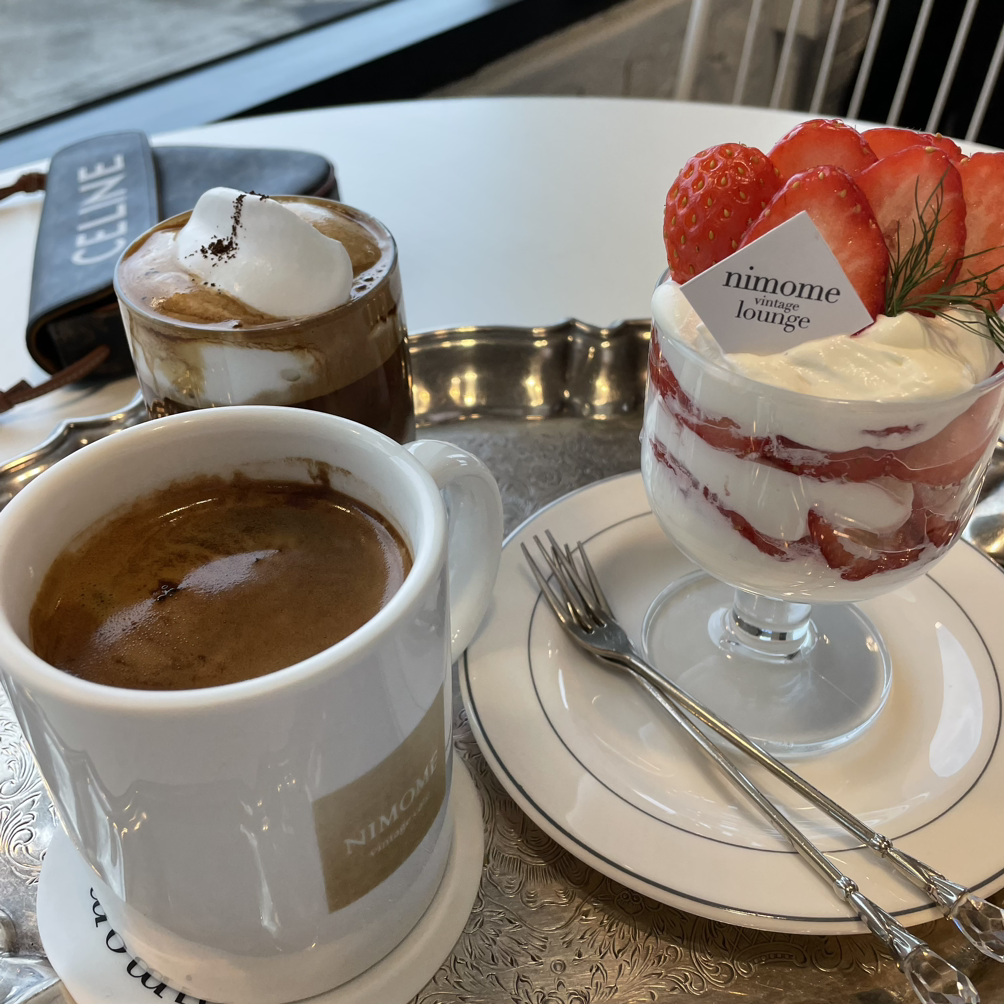 그리고 우리가 주문한 스트로베리 티라미수와 카멜 비엔나, 아메리카노 너무 예쁘고 맛도 고급스럽다.