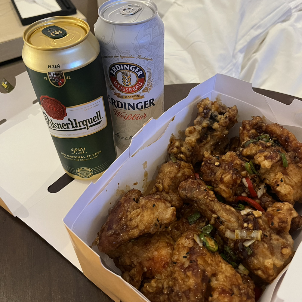 집에 들어왔을 때가 벌써 6시 즈음이라 침대를 보자마자 눕고 싶었지만 점심에 먹은 전복은 이미 소화가 다 된 상황. 얼른 씻고 치맥을 하기로 결정.