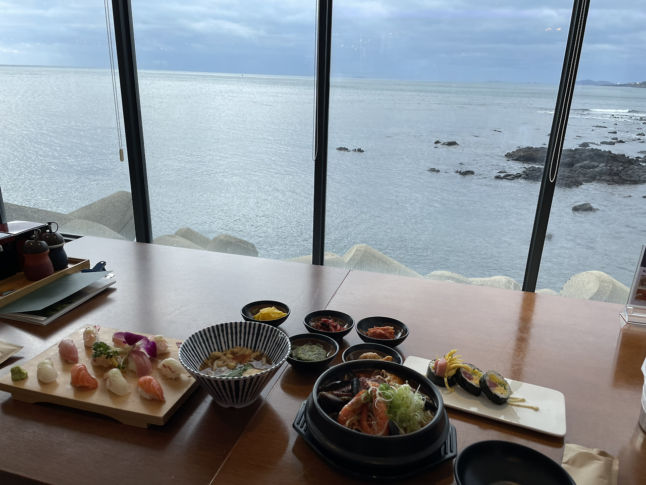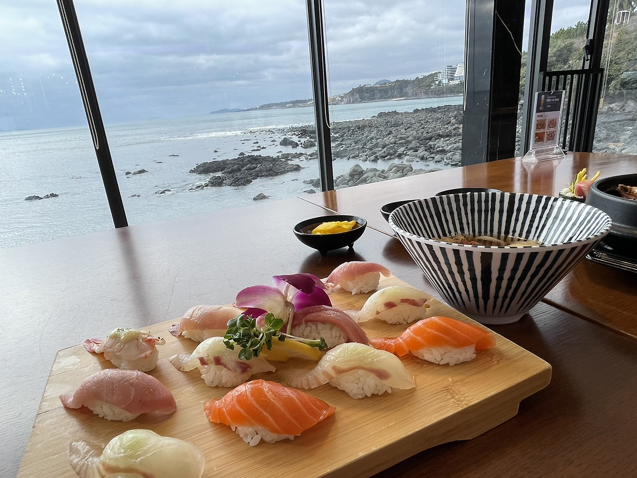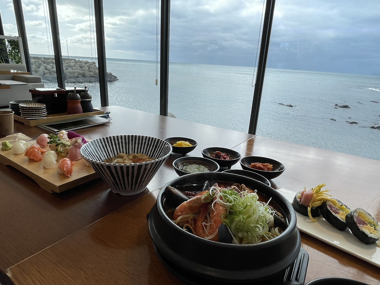 바로 이 바다 풍경을 바라보며 먹는 해물라면과 초밥 런치세트 때문!