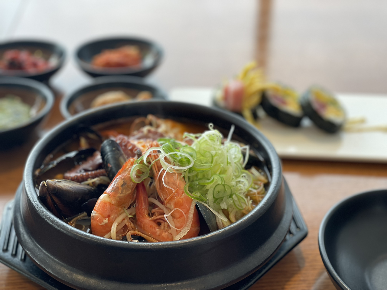 바다 뷰를 바라보며 먹는 해물문어라면이 참 맛있었다.