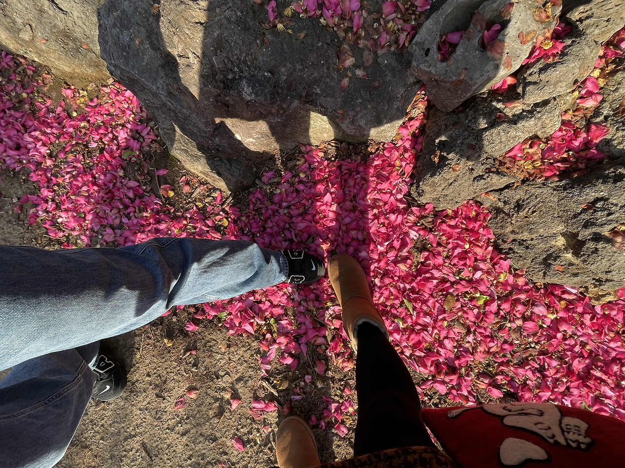 그리고 바닥에 깔린 핑크빛 동백꽃잎도 정말 근사하다.