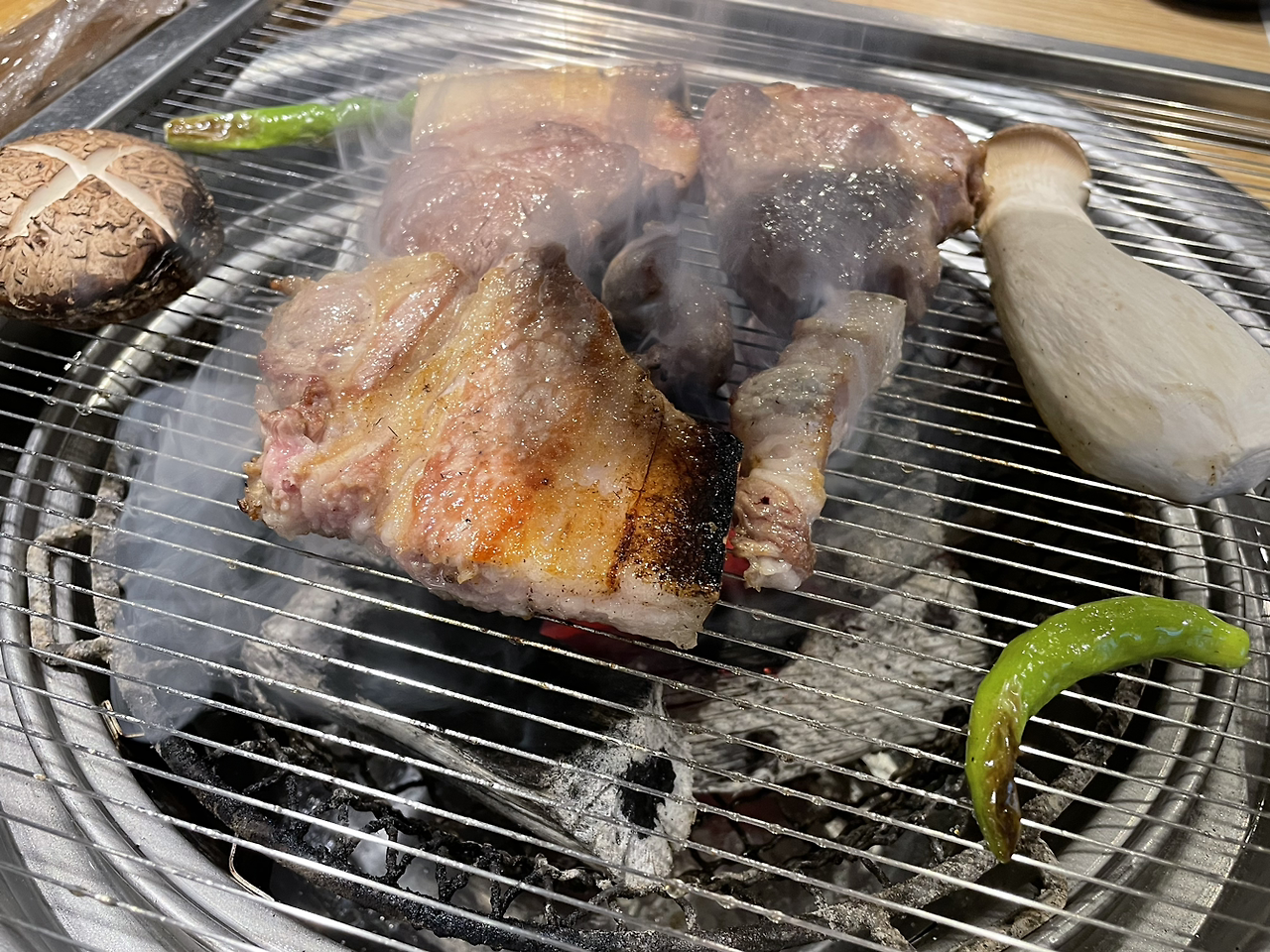 평소 고기 잘 안 구어 본 테가 난다. 고기 장인 짝꿍이 와서 구워주면 좋겠다 ㅠㅠ