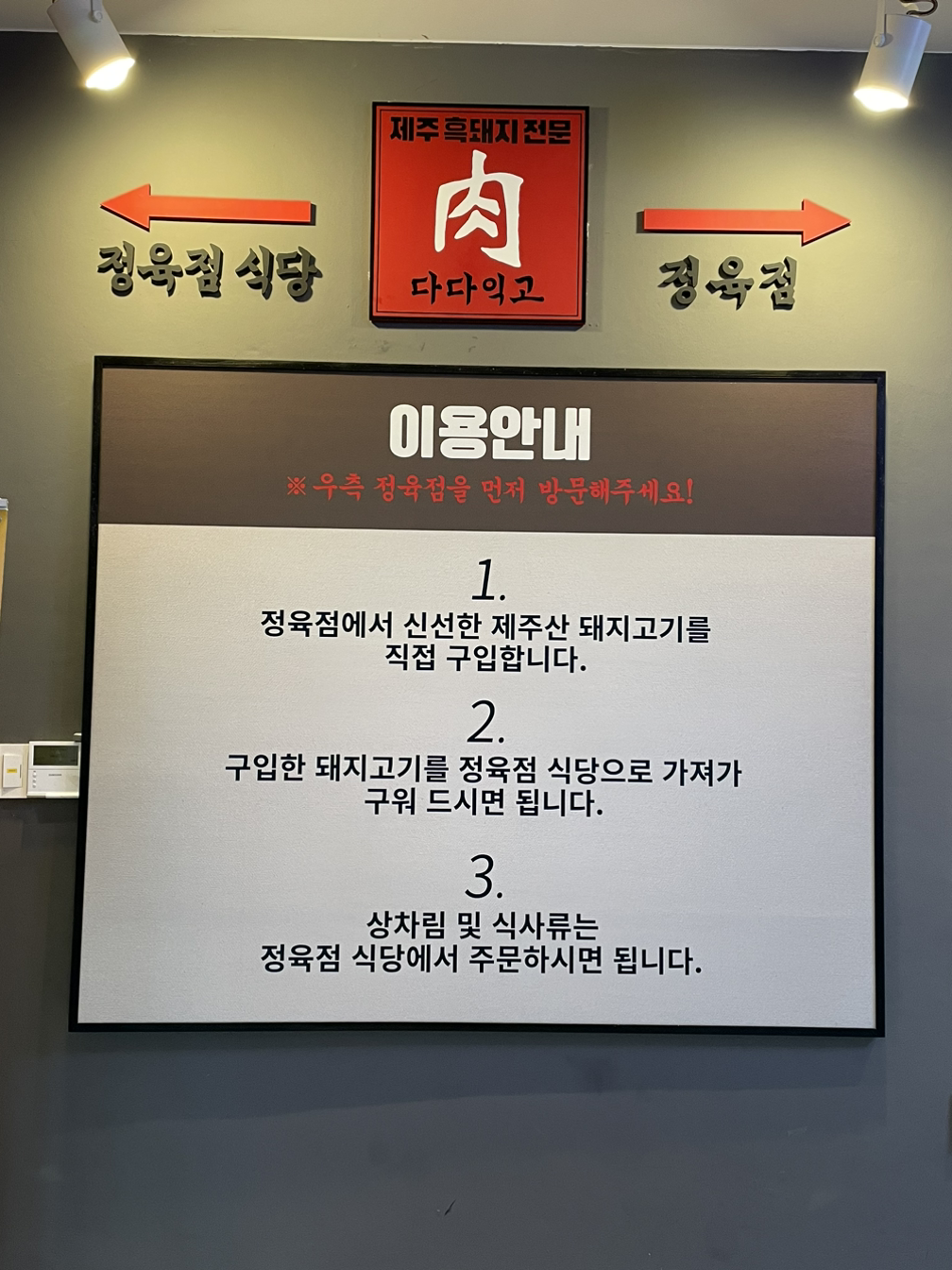다다익고 정육점식당은 백종원 님 정육점식당으로 제주에만 3곳이 있다고 한다.